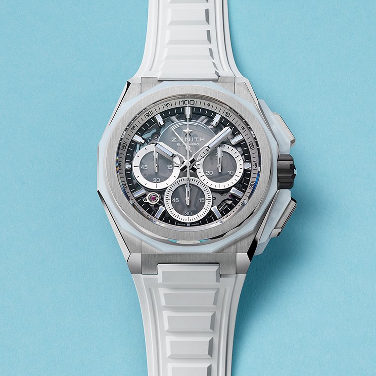 สะท้อนความแกร่งในตัวเรือนสตีลขนาด 41.0 มิลลิเมตร พร้อมกับอวดหน้าปัดสเกเลตันที่กลมกลืนไปกับสะพานยึดชิ้นส่วนในดีไซน์สัญลักษณ์รูปดาวสี่แฉกที่สื่อถึงโลโก้ Double Z ของ Zenith จากปี 1960 ชุดเข็มและหลักชั่วโมงเคลือบสารเรืองแสงซูเปอร์ลูมิโนว่าที่ให้การอ่านค่าได้ชัดตาแม้ในที่แสงน้อย แยกการจับเวลาในระบบโครโนกราฟออกมาไว้ในตำแหน่ง 6 นาฬิกาด้วยวงแหวนประดับสเกลอย่างลงตัว แสดงวินาทีอย่างละเอียดที่ 1/10 วินาทีและหมุนครบรอบในทุกๆ 10 วินาที มีให้เลือกทั้งสีดำและสีน้ำเงิน ขับเคลื่อนโดยกลไกอัตโนมัติ El Primero คาลิเบอร์ 3620 SK กลไกที่ต่อยอดพัฒนาจาก El Primero 3600 1/10th กลไกรุ่นสองของตระกูล ทำงานด้วยความถี่ 5 เฮิรตซ์ หรือ 36,000 ครั้งต่อชั่วโมง โรเตอร์ขึ้นลานสองทิศทาง เร็วและทรงประสิทธิภาพ สำรองพลังงานได้นาน 60 ชั่วโมง พื้นผิวของตัวเรือนและสายได้รับการขัดแต่งทั้งแบบปัดด้านและขัดเงา สร้างมิติที่ดูงามสง่าและขับความลึกของสีสันได้อย่างดี พร้อมความสามารถกันน้ำได้ 100 เมตร
