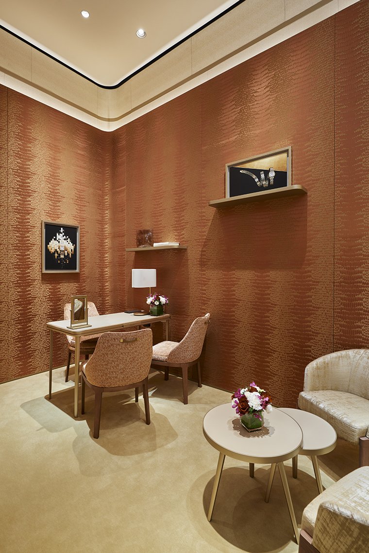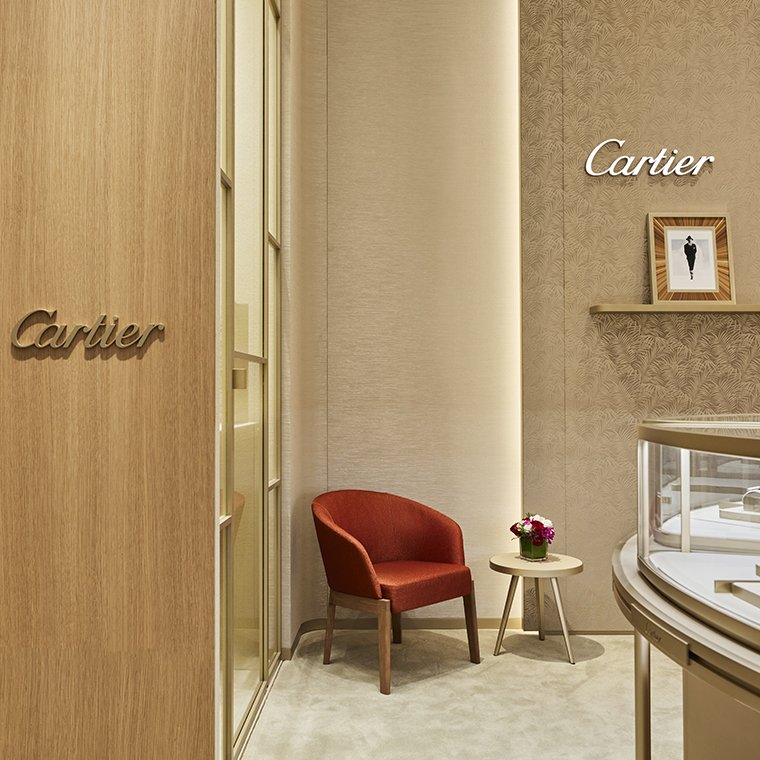 ภายในมีตู้โชว์สำหรับวางโชว์นาฬิกาทั้งหมด 120 เรือน มีห้อง VIP สำหรับลูกค้าพิเศษหนึ่งห้อง ตกแต่งในสไตล์ยุค Art Deco ซึ่งเป็นเอกลักษณ์เฉพาะที่หยั่งรากลึกบ่งบอกความเป็นคาร์เทียร์มาอย่างช้านาน