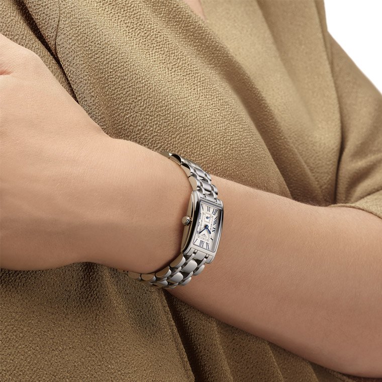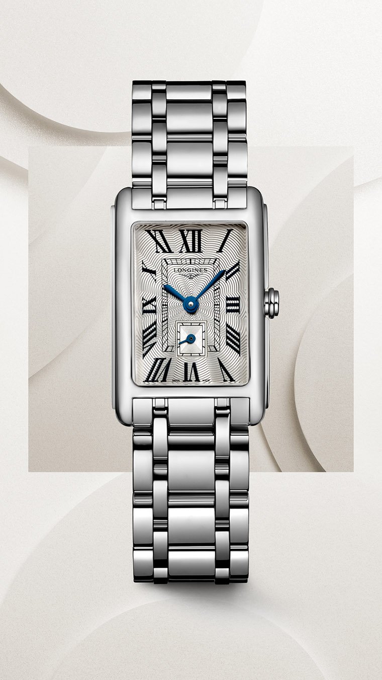 Longines DolceVita (ลองจินส์ โดลเช่วิต้า) กับหน้าปัดแบบ Sector Dial (แบ่งส่วน) ในสไตล์ Art Deco (อาร์ตเดโค) มาพร้อมสายแบบเปลี่ยนได้ในตัวที่จะเข้ามาช่วยเติมเต็มคอลเลกชั่นนี้ให้สมบูรณ์แบบยิ่งขึ้น โดย Longines DolceVita มีเอกลักษณ์ที่โดดเด่นด้วยตัวเรือนสี่เหลี่ยมผืนผ้าที่ได้แรงบันดาลใจจากเรือนเวลาในยุค 1920 อันสะท้อนให้เห็นถึงนิยามการใช้ชีวิตอันหอมหวานแบบชาวอิตาเลียน หรือที่เรียกว่า “Dolce Vita” นั่นเอง