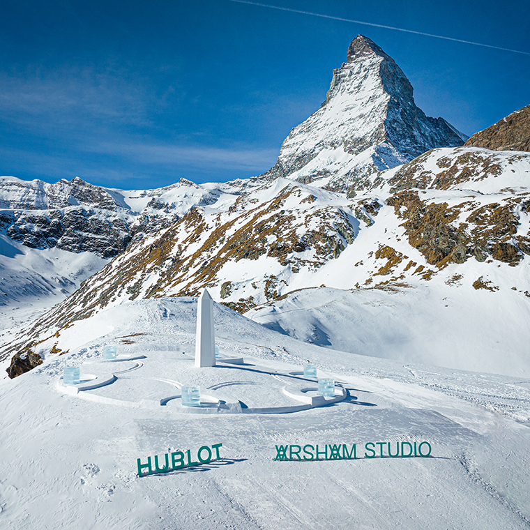 เพื่อเป็นการฉลองจุดเริ่มต้นแห่งความร่วมมือ Daniel Arsham (แดเนียล อาร์แชม) ได้สร้างสรรค์งานศิลปะจัดวาง หรืออินสตอลเลชันอาร์ตในรูปแบบนาฬิกาแดด ขนาด 20 เมตร ที่ได้รับแรงบันดาลใจมาจาก Hublot (อูโบลท์) โดยติดตั้งอยู่ท่ามกลางทิวทัศน์ของผืนหิมะแห่ง Zermatt (เซอร์แมท) ใน Schwarzsee (ชวาร์ซี) ณ ระดับความสูง 2583 เมตร