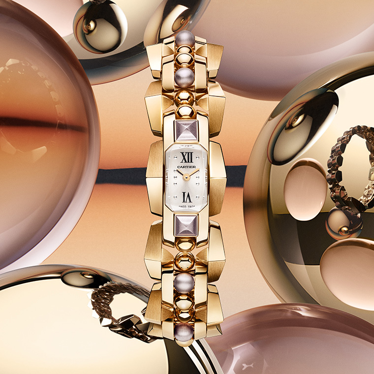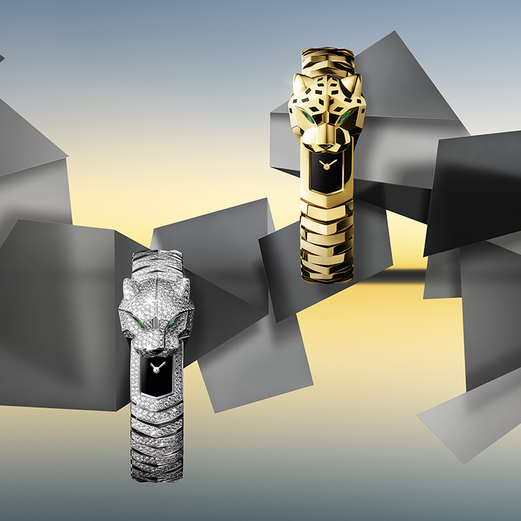 แนวทางสถาปัตยกรรมที่ใช้กับเสือแพนเตอร์นี้สืบทอดโดยตรงจากเครื่องประดับที่เปิดตัวในปี 2005 และใช้การเจาะเป็นรูปทรงเรขาคณิตร่วมกับมุมแหลม ดีไซน์ที่แม่นยำพรั่งพร้อม สอดคล้องกับสายนาฬิกาที่พัฒนาโดยสตูดิโอสร้างสรรค์และ Manufacture ของเมซง เชื่อมด้วยบานพับที่ซ่อนไว้อย่างแนบเนียน ให้ความยืดหยุ่นสูงสุดตลอดเส้น ยามสวมใส่จึงแนบสนิทไปกับข้อมือ เปี่ยมเสน่ห์อย่างแนบสนิทไร้รอยต่อ ไม่ว่าจะเป็นตัวเรือนเยลโลว์โกลด์หรือโรสโกลด์แต้มแลคเกอร์สีดำ ฝังพลอยซาโวไรต์ที่ดวงตา หรือตัวเรือนไวท์โกลด์ฝังเพชรและฝังมรกตที่ดวงตา ก็มีเสน่ห์ดึงดูดจนไม่อาจละสายตา