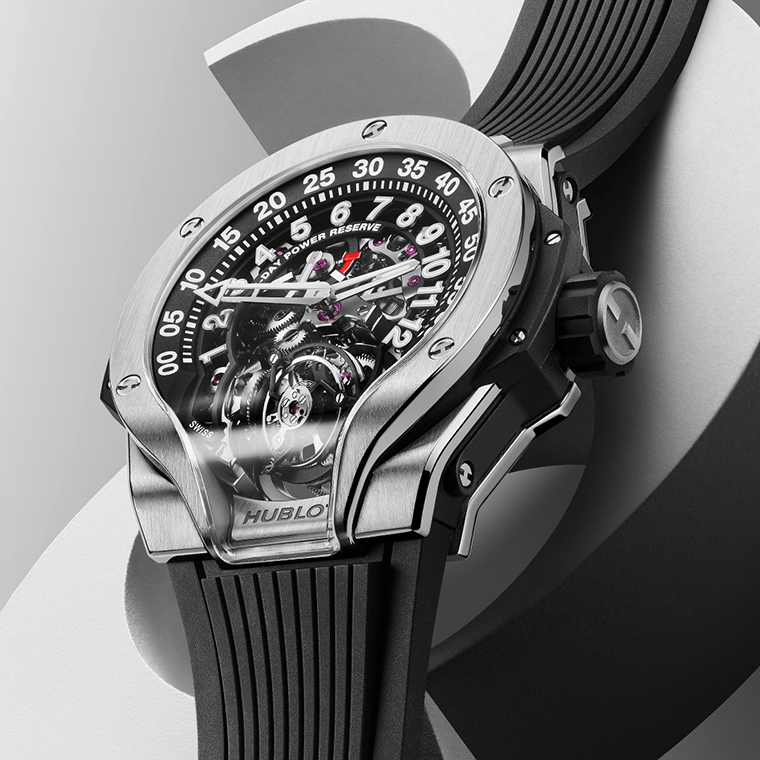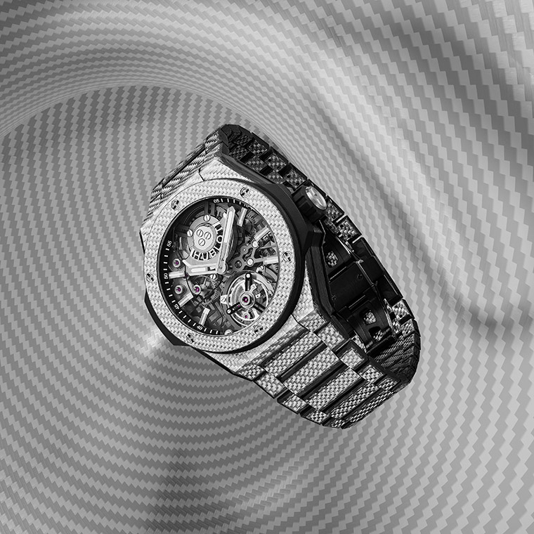 The Art of Fusion ศิลปะแห่งการผสมผสานที่เต็มเปี่ยมด้วยขุมพลังจาก Hublot โดย Big Bang รุ่นใหม่นี้ได้รวมเอากลไกทูร์บิญองไมโคร-โรเตอร์ที่ผลิตขึ้นภายในโรงงานของตัวเอง บรรจุลงในตัวเรือนคาร์บอนไฟเบอร์และเท็กซาเลียมที่แข็งแกร่งและมีน้ำหนักเบาเป็นพิเศษ มาพร้อมกับสายนาฬิกาแบบ Integrated ในรูปแบบที่ไร้รอยต่อ ถือเป็นหนึ่งผลงาน Haute Horlogerie ที่หลอมรวมเข้ากับเทคโนโลยีอันล้ำสมัย