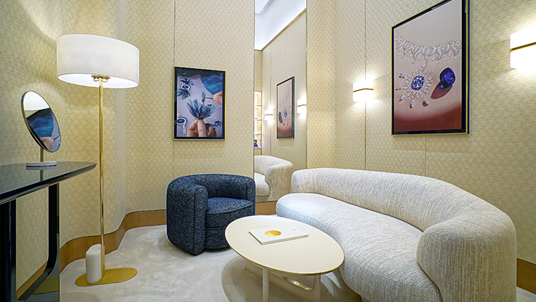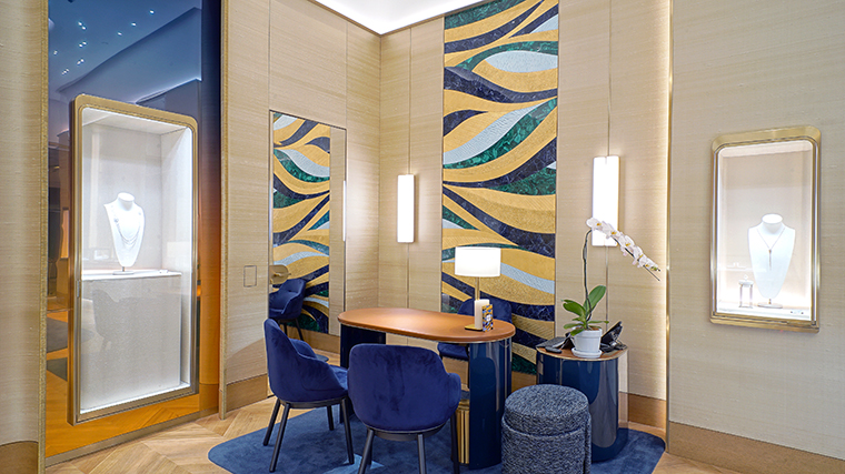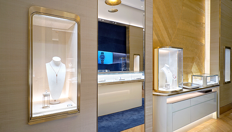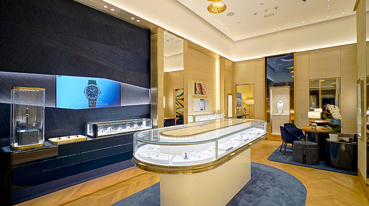 บูติกคอนเซปต์ใหม่ตั้งอยู่ที่ชั้น M ศูนย์การค้าสยามพารากอน บนพื้นที่ราว 70 ตร.ม. ตกแต่งด้วยโทนสีน้ำเงินและสีทองอันเป็นเอกลักษณ์ของแบรนด์ ผนังโดยรอบเล่นลวดลายที่สะท้อนถึงหัตถศิลป์เก่าแก่ที่มีมาตั้งแต่ปี 1961 อย่าง Palace Décor หนึ่งในลายเซ็นที่สร้างชื่อให้กับ Piaget ซึ่งได้รับแรงบันดาลใจจากเทคนิคการแกะสลักลวดลายกิโยเช่ที่นิยมใช้ในอุตสาหกรรมการผลิตนาฬิกา ส่งมอบลวดลายที่มีเพียงหนึ่งเดียวในโลก ทั้งยังมอบสัมผัสที่งดงามราวกับเส้นไหม