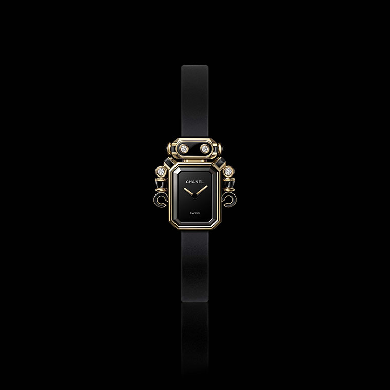 ตัวเรือนและขอบตัวเรือนสตีลเคลือบสีดำ ขนาด 39.3 x 25.0 x 8.8 มม. ด้านหลังตัวเรือนสตีล พร้อมข้อความ “LIMITED EDITION” หน้าปัดเคลือบแลคเกอร์สีดำ ด้านหนึ่งประดับเพชรเจียระไนทรงพริ้นเซส (~0.05 กะรัต) สายหนังลูกวัวลายควิลท์สีทองตัดขอบสีดำและบุซับด้วยหนังลูกวัวสีดำ ประดับตัวอักษร «CHANEL» เคลือบสีทอง ทำงานด้วกลไกควอตซ์ที่มีความเที่ยงตรงสูง ผลิตจำกัด