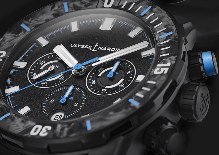 เพื่อให้สอดคล้องกับความมุ่งมั่นด้านกีฬาและสิ่งแวดล้อม ดังนั้นทางแบรนด์จึงได้นําเสนอผลงาน The Ocean Race Diver Chronograph นาฬิการุ่นใหม่เพื่อฉลองครบรอบ 50 ปีของ The Ocean Race ซึ่งเริ่มต้นขึ้นครั้งแรกในปี 1973 จากเมืองชายฝั่ง Portsmouth ในประเทศอังกฤษ นาฬิกาที่มีคุณสมบัติกันน้ำลึก 300 เมตร ตัวเรือนไทเทเนียม DLC สีดําพ่นทรายขนาด 44 มม. บรรจุกลไกโครโนกราฟ Ulysse Nardin Manufacturing Calibre UN-150 และส่วนประกอบ 318 ชิ้น สามารถชมการทำงานของกลไกผ่านฝาหลังคริสตัลแซฟไฟร์ และแสดงหมายเลข 50 เพื่อเป็นการรําลึกถึงวันครบรอบนี้ โลโก้ Ocean Race ติดอยู่ที่ชิ้นส่วนเซรามิกที่ประดับ สายยางและหัวเข็มขัดแบบหมุด กรอบแบบทิศทางเดียวเคลือบด้วย Carbonium ซึ่งมีเส้นใยที่รีไซเคิลจากส่วนของลำตัวเครื่องบิน ทําให้มีผลกระทบต่อสิ่งแวดล้อมน้อยกว่าวัสดุคอมโพสิตคาร์บอนอื่นๆ ถึง 40% Ulysse Nardin กลายเป็นผู้ผลิตนาฬิการายแรกที่ใช้วัสดุที่เป็นนวัตกรรมใหม่นี้กับนาฬิกาในปี 2019 วัสดุนี้ให้ความทนทานที่หาที่เปรียบมิได้ด้วยน้ำหนักที่เบาและเอฟเฟกต์ลายหินอ่อนที่ยอดเยี่ยมทําให้นาฬิกาเรือนนี้เป็นผลงานที่มีเอกลักษณ์เฉพาะตัวอย่างแท้จริง