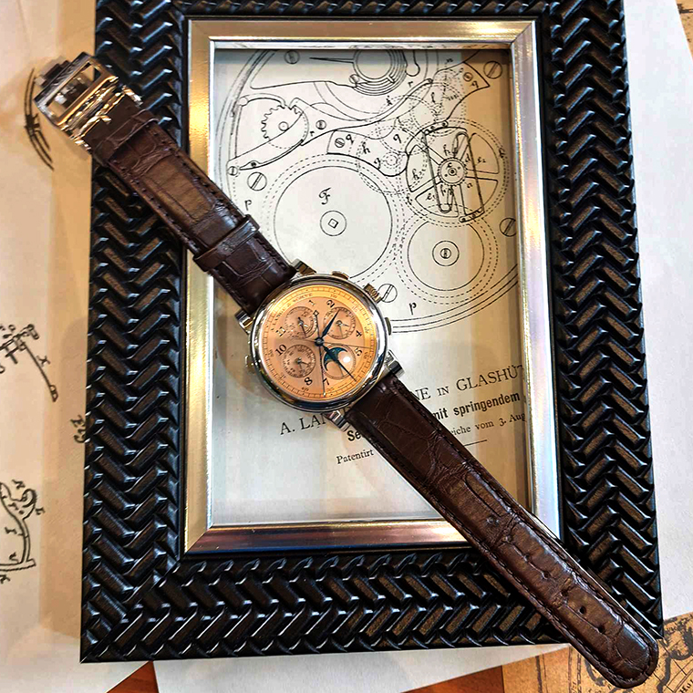 A.Lange & Söhne 1815 Rattrapante Perpetual Calendar เปิดตัวครั้งแรกเมื่อปี 2013 ปีนี้นาฬิการุ่นนี้ได้หวนกลับมาอีกครั้ง ในตัวเรือนวัสดุไวท์โกลด์ 18 กะรัต รังสรรค์ในขนาด 41.9 มิลลิเมตร คู่กับพื้นหน้าปัดที่ผลิตจากพิงค์โกลด์ 18 กะรัต สามารถจับเวลาโครโนกราฟแบบแยกเข็มวินาที 2 เข็มได้ ร่วมกับระบบแสดงปฏิทินถาวรที่สามารถแสดงข้อมูล วัน วันที่ เดือน ปีอธิกสุรทิน วันที่ เดือน ปี และปีอธิกสุรทินที่แม่นยำโดยไม่ต้องแก้ไขหรือปรับตั้งเลยจนถึงวันที่ 1 มีนาคม ปี 2100 อีกทั้งการแสดงเวลาข้างขึ้นข้างแรม ก็สามารถแสดงได้อย่างแม่นยำเช่นกัน จากการทำงานของกลไกระบบไขลานด้วยมือ Cal. L101.1 ทำงานด้วยความถี่ 21,600 ครั้งต่อชั่วโมง สามารถสะสมพลังงานได้สูงสุด 42 ชั่วโมง จับคู่กับสายหนังจระเข้สีน้ำตาลเข้มที่เย็บด้วยฝีมือ พร้อมหัวเข็มขัดผลิตจากไวท์โกลด์ 18 กะรัต ผลิตขึ้นในจำนวน 100 เรือน