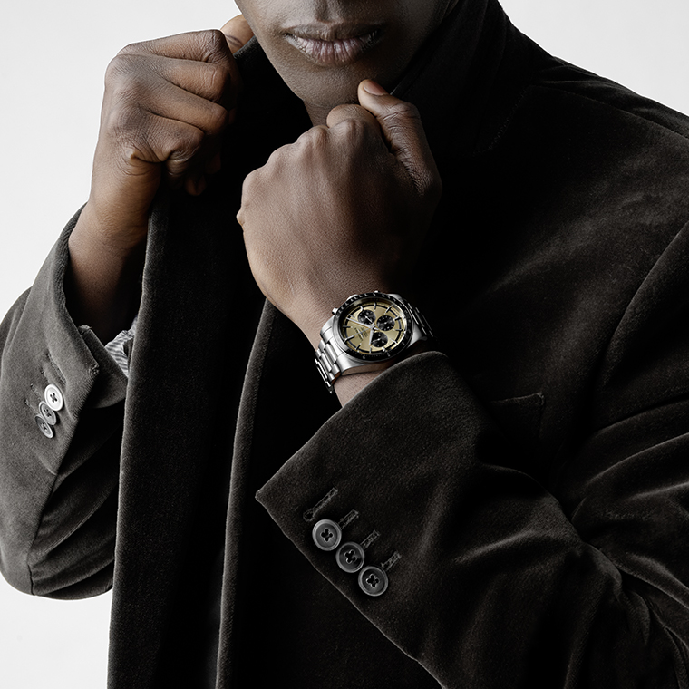 เข็มนาฬิกาชุบโรเดียมและมาร์คเกอร์ชั่วโมงเคลือบด้วยสาร Super-LumiNova® เพื่อการอ่านค่าเวลาที่ชัดเจนและง่ายดายไม่ว่าจะเป็นกลางวันหรือกลางคืน ขนาดความยาวแตกต่างกันของมาร์คเกอร์ชั่วโมงที่นูนขึ้นมาช่วยสร้างไดนามิกให้หน้าปัดนาฬิกา นอกจากนี้หน้าปัดของวาริเอชั่นอื่นๆ อย่างลายขดก้นหอย ยังช่วยสร้างความโดดเด่นให้กับนาฬิกาอีกด้วย