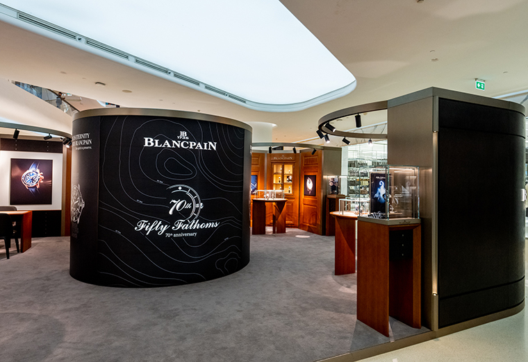 ภายใน pop-up store แบ่งออกเป็น 4 ส่วนด้วยกันเพื่อนำเสนอนาฬิกาในแต่ละคอลเลกชั่น ได้แก่ คอลเลกชั่น ‘Villeret’ เชื่อมโยงกับ ‘ดิน’, คอลเลกชั่น ‘Fifty Fathoms’ เชื่อมโยงกับ ‘น้ำ’, คอลเลกชั่น‘Air Command’ เชื่อมโยงกับ ‘ลม’ และคอลเลกชั่น ‘Ladybird’ เชื่อมโยงกับ ‘ไฟ’ โดย pop-up store แห่งนี้มีดีไซน์หรูหรา แต่ก็เรียบง่าย ถ่ายทอดผ่านอัตลักษณ์และความเชี่ยวชาญอันล้ำค่าจากรุ่นสู่รุ่น ให้ผู้ที่ครอบครองเรือนเวลา Blancpain ได้สัมผัสนิยามบทใหม่ นาฬิกา Blancpain แต่ละเรือนคือมาสเตอร์พีซที่หลอมรวมความยืนยงข้ามผ่านกาลเวลา เปรียบเสมือนศิลปะอันเป็นเอกลักษณ์ไม่เหมือนใครและเปี่ยมไปด้วยคุณค่า ซึ่งคือคุณค่าที่หยั่งรากลึกอยู่ในทุกสิ่งที่ Blancpain รังสรรค์ขึ้น