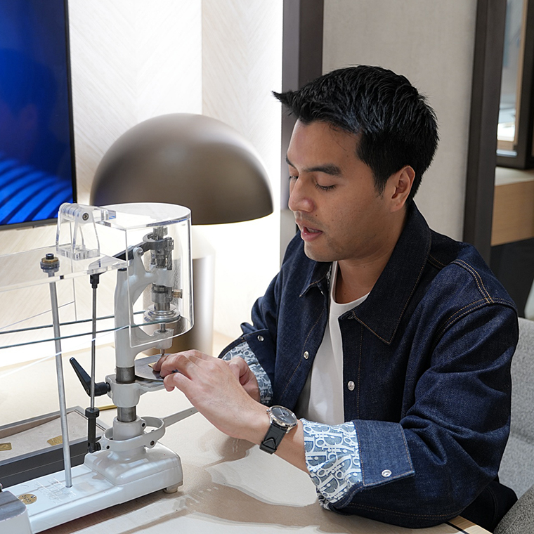 บูติกแห่งใหม่มาพร้อมคอนเซ็ปต์ใหม่ของ Jaeger-Lecoultre เปิดประตูต้อนรับเหล่าแขกผู้มีเกียรติและลูกค้าคนสำคัญระดับวีไอพีที่ให้เกียรติมาร่วมสัมผัสกับบรรยากาศสุดพิเศษ โดยงานนี้ได้รับเกียรติจากคุณวีรศักดิ์ ตั้งอุดมเลิศ ผู้จัดการแบรนด์ Jaeger-Lecoultre ประเทศไทยที่ได้ให้การต้อนรับแขกผู้มีเกียรติและลูกค้าคนสำคัญที่มาร่วมงานในวันนี้ด้วยตนเอง นอกจากจะได้ชื่นชมนาฬิกาเรือนสวยในทุกคอลเลกชั่นของ Jaeger-LeCoultre แล้ว แขกผู้มีเกียรติยังได้ลองสัมผัสประสบการณ์การขัดแต่งลาย เพอลาจ (Perlage) ด้วยเครื่อมือที่นำมาเป็นพิเศษช่วงเปิดตัวบูติก เพื่อสร้างลวดลายบนกลไก งานนี้มีศิลปินหนุ่มคนดังอย่าง กองทัพ พีค ที่มาร่วมเยี่ยมชมบูติกได้ลองทำด้วยตนเอง ฝีมือจัดว่าประณีตไม่เบาเลยทีเดียว