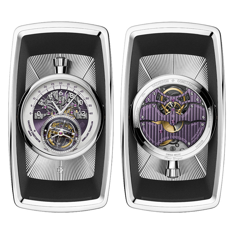 Vacheron Constantin ยังก้าวไปเหนือยิ่งกว่าความเชี่ยวชาญในการประดิษฐ์นาฬิกาของตน ในการออกแบบและผลิตตัวถือเรือนเวลานี้ ซึ่งอย่างหลังนั้นยังจําเป็นต้องมีความสมบูรณ์ทางเทคนิค นาฬิกา (สามารถปรับหมุนได้ 180 องศา สำหรับชื่นชมการตกแต่งบนฝาหลัง) รวมถึงความปลอดภัย (ในกรณีเกิดการกระแทก) และมอบซึ่งสุนทรียะความสวยงามอันน่าพอใจ (โดยติดตั้งได้อย่างลงตัวสมบูรณ์แบบเข้ากับรหัสด้านความสวยงามของยานยนต์) ขณะเดียวกันก็ยังคงรักษาไว้ซึ่งความมีเอกลักษณ์เฉพาะตัวและ DNA ของ Vacheron Constantin ซึ่งนับเป็นความเป็นแม่นยำที่ทำให้เรือนเวลาจากการสั่งทำและสั่งซื้อพิเศษนี้มีความน่าสนใจอย่างมาก ทั้งยังบังคับให้เรามีจินตนาการและกล้าที่จะก้าวออกจากพื้นที่ปลอดภัย