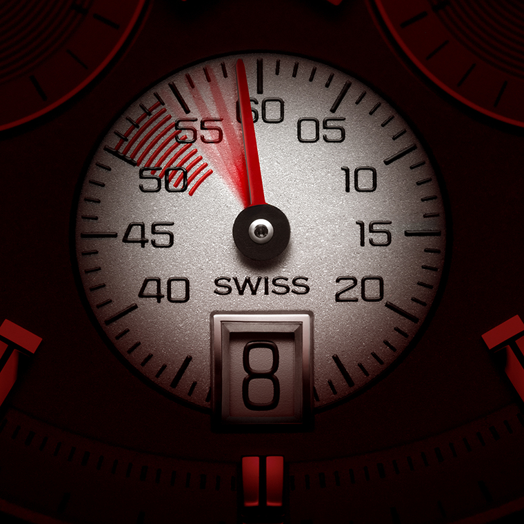 โดยเมื่อเพิ่มสัมผัสแห่งแรงบันดาลใจในยานยนต์ ด้วยการเสริมดีเทลสีแดงบางๆ ทั่วทั้งนาฬิกา ซึ่งบริเวณหน้าปัดย่อยที่ 6 นาฬิกา ได้มีการอ้างอิงถึงแดชบอร์ดไอคอนิกของ Porshe ในช่วงยุค 1970 ที่ครอบคลุมพื้นที่ถึงประมาณ 50 กม./ชม. เพื่อระบุความเร็วที่แนะนำในเขตเมืองต่างๆ