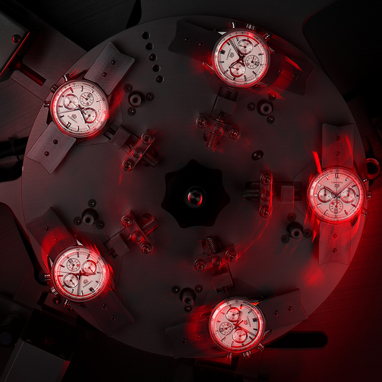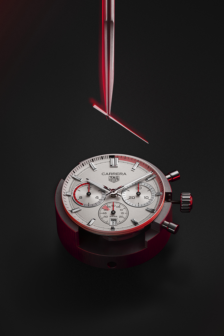 สิ่งที่ต้องยอมรับให้ในความเป็นมรดกรถสปอร์ตที่รุ่งเรืองมานานอีกอย่าง คือ ส่วนสีแดงบริเวณหน้าปัดย่อย 9 นาฬิกา โดยทำหน้าที่เป็นเครื่องเตือนถึงขีดจำกัดวิกฤตของเครื่องยนต์ซึ่งเกินกว่าความเสียหายที่อาจเกิดขึ้นได้ ไม่ใช่เรื่องบังเอิญที่ TAG Heuer เลือกที่จะวางเส้นสีแดงไว้ที่ 6.8 ชั่วโมง หมายถึงขีดจำกัด 6,800 รอบต่อนาที นอกจากนี้ สิ่งไม่ควรมองข้าม คือ เข็มนาฬิกาได้รับแรงบันดาลใจจากรูปทรงของแดชบอร์ดรถยนต์ เสริมสุนทรียภาพของการออกแบบยานยนต์อย่างเต็มพิกัด