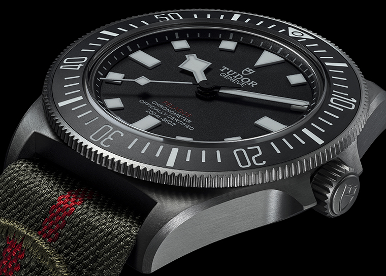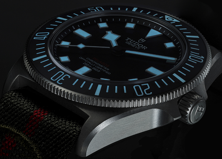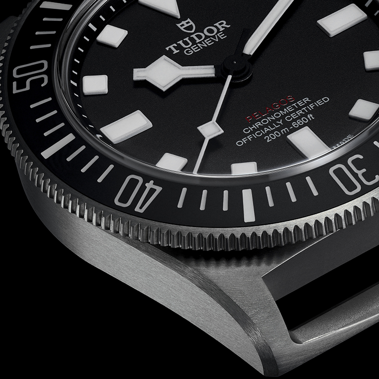 รูปโฉมอันสง่างามของนาฬิการุ่น Pelagos FXD ได้แรงบันดาลใจมาจากนาฬิกานักดำน้ำของ TUDOR ซึ่งเจ้าหน้าที่กองทัพเรือสหรัฐเคยใช้ในช่วงปลายทศวรรษ 1960 ถึงต้นทศวรรษ 1980 โดยออกแบบเป็นสีดำและมีเครื่องหมายบอกชั่วโมงทรงสี่เหลี่ยมอันเป็นเอกลักษณ์ รวมทั้งเข็มนาฬิกาทรงเหลี่ยมที่รู้จักกันในชื่อ “เกล็ดหิมะ” ซึ่ง TUDOR รังสรรค์ขึ้นในปี 1969 ช่วยเพิ่มความเข้มของการเรืองแสงของนาฬิกาให้ชัดเจนยิ่งขึ้นในสภาพแสงน้อย นอกจากนี้ยังมีขอบหน้าปัดแบบหมุนได้ทิศทางเดียวและวงแหวนเซรามิกพื้นผิวแบบพ่นทรายและเคลือบสารเรืองแสง ตัวเรือนไทเทเนียมขนาด 42 มม. สามารถกันน้ำได้ถึง 200 เมตร และปัดลายซาตินทั้งเรือนเพื่อให้พื้นผิวมีความด้านและลดระดับการสะท้อนแสง