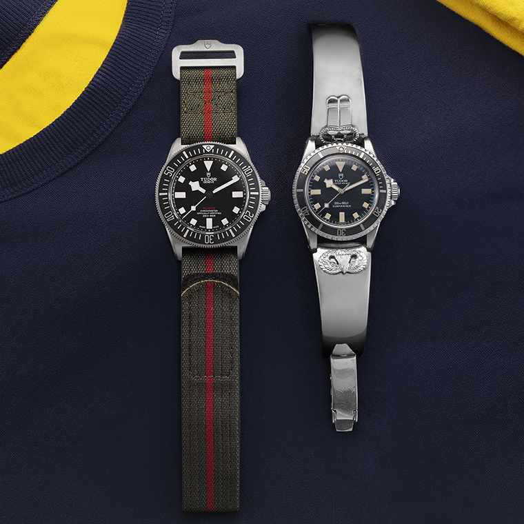 ในช่วงกลางทศวรรษ 1950 นาฬิกาดำน้ำของ TUDOR ผ่านการทดสอบการประเมินประสิทธิภาพโดยหน่วยงานต่างๆ ของกองทัพเรือสหรัฐ และในปี 1958 ก็ได้รับการยอมรับอย่างเป็นทางการจากกองทัพเรือซึ่งจัดซื้อและมอบให้นักดำน้ำในหน่วยงานต่างๆ ใช้ในการปฏิบัติหน้าที่ Pelagos FXD รุ่นนี้คือตัวแทนที่สืบสานเจตจำนงของนาฬิกาเหล่านั้น พื้นหลังนาฬิกามีสัญลักษณ์ FXD ซึ่งสื่อถึงบาร์สำหรับใส่สายนาฬิกาแบบ FiXeD ที่มีประสิทธิภาพความแข็งแกร่งทนทานเหนือชั้น นาฬิการุ่นนี้บ่งบอกถึงความทันสมัย ประสิทธิภาพเหนือชั้น และความทนทาน ซึ่งได้รับการต่อยอดมาจากนาฬิการุ่น “Milsub” (ย่อจาก Military Submariner) อันโด่งดัง รูปลักษณ์มีความคล้ายคลึงกับ TUDOR Oyster Prince Submariner หมายเลขอ้างอิง 7016 ซึ่งผลิตในช่วงปลายทศวรรษ 60 โดยมีองค์ประกอบที่เป็นไปตามข้อกำหนดสำหรับนาฬิกาดำน้ำของกองทัพสหรัฐ เช่น สลักสายนาฬิกาแบบยึดตายตัว อีกทั้งยังมีรายละเอียดต่างๆ ที่เป็นเอกลักษณ์ของนาฬิกา TUDOR มาหลายยุคหลายสมัย เช่น ที่ครอบเม็ดมะยมแบบนูนที่มักใช้สำหรับนาฬิกา TUDOR Submariner รุ่นแรกๆ