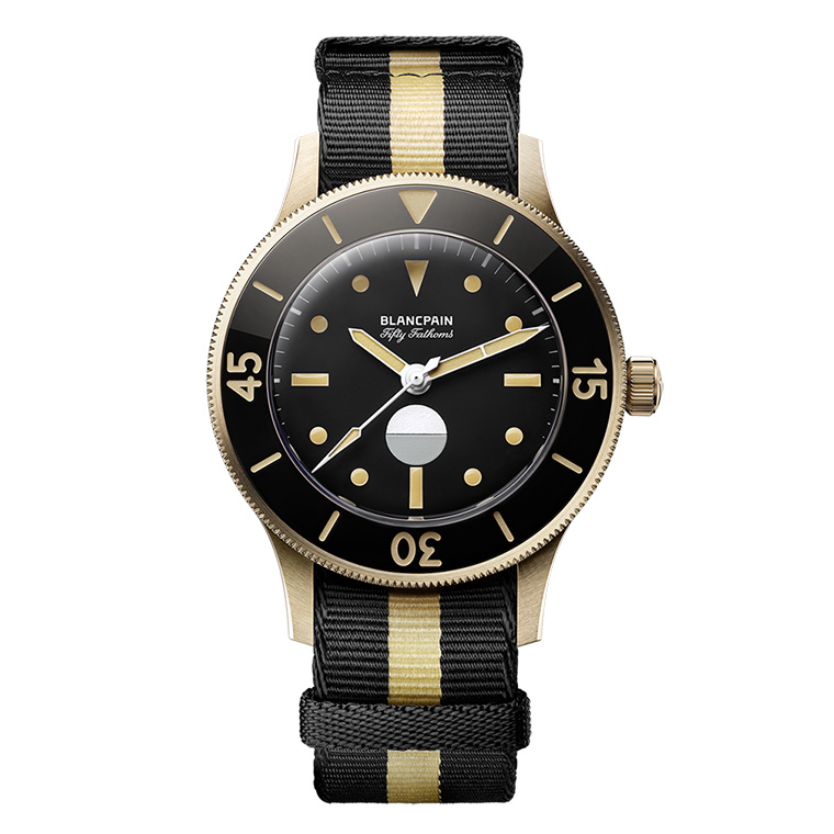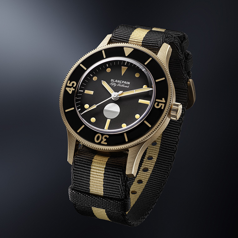 เปิดตัวครั้งแรกในปี 1953 Fifty Fathoms คือนาฬิกาดำน้ำเรือนแรกอย่างแท้จริงที่ถูกพัฒนาขึ้นโดยนักดำน้ำเพื่อตอบโจทย์ความต้องการในการสำรวจโลกใต้ทะเล มันถูกเลือกใช้โดยนักดำน้ำรุ่นบุกเบิก และเหล่าหน่วยรบประดาน้ำจากทั่วทุกมุมโลกในฐานะอุปกรณ์จับเวลาระดับมืออาชีพ ด้วยประสิทธิภาพในการกันน้ำ ระบบปะเก็นสองชั้นบริเวณเม็ดมะยม กลไกขึ้นลานอัตโนมัติ หน้าปัดสีเข้มที่ตัดกันอย่างชัดเจนกับสารเรือนแสงที่หลักบอกเวลา ขอบหน้าปัดหมุนสำหรับจับเวลาที่สามารถล็อคได้ และคุณสมบัติในการป้องกันสนามแม่เหล็ก ทำให้ Fifty Fathoms กลายเป็นอุปกรณ์ที่ขาดไม่ได้สำหรับนักดำน้ำในการปฏิบัติภารกิจใต้ผืนทะเล