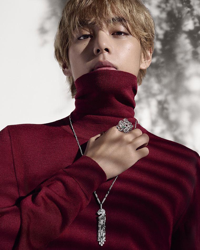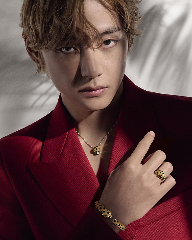 “วี” ในฐานะเฟซคนล่าสุดของแคมเปญคอลเลคชั่น Panthère de Cartier สามารถถ่ายทอดตัวตนอันเป็นเอกลักษณ์ผ่านเครื่องประดับในคอลเลคชั่น Panthère de Cartier ได้อย่างลงตัว ไม่ว่าจะเป็นแหวน Panthère de Cartier ประดับเพชร โดดเด่นด้วยเสือแพนเตอร์ในดีไซน์แบบกราฟิก, กำไลข้อมือ Panthère de Cartierสไตล์แต็ทอาแต็ท (tête-à-tête), เรือนเวลาเรเวเลซิยงน์ ดูน ปองแตร์ (Révélation d'une Panthère) และ สร้อยคอไวท์โกลด์ประดับมรกต ออนิกซ์ และเพชร จนสามารถกล่าวได้ว่า “วี” ถือเป็นบุคคลในอุดมคติที่สามารถถ่ายทอดเรื่องราวของคอลเลคชั่น Panthère de Cartier ในทุกรูปแบบได้อย่างสมบูรณ์แบบ เหมาะสมกับตำแหน่งแบรนด์แอมบาสเดอร์ระดับโลกของเมซง