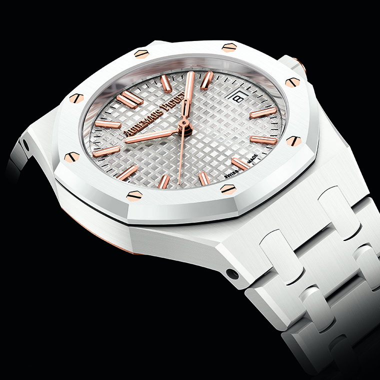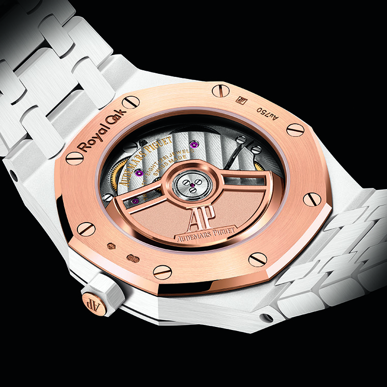 นาฬิกาแต่ละเรือนยังมาพร้อมสายหนังจระเข้ “ลายสี่เหลี่ยมกว้าง” ในโทนสีเดียวกันกับสีของหน้าปัด พร้อมเข็มขัดล็อกสายนาฬิกาแบบกลัดพิ้งค์โกลด์ 18 กะรัตแบบใหม่ของคอลเลกชันที่มีการสลักคำว่า “Audemars Piguet” อีกทั้งยังมีสายนาฬิกาเคลือบยางหุ้มด้านในด้วยหนังลูกวัว พร้อมตกแต่งสายนาฬิกาให้มีลวดลายทั้งในสีงาช้างและสีม่วงให้เลือกสรร์ที่บูทีคของ Audemars Piguet อีกด้วย