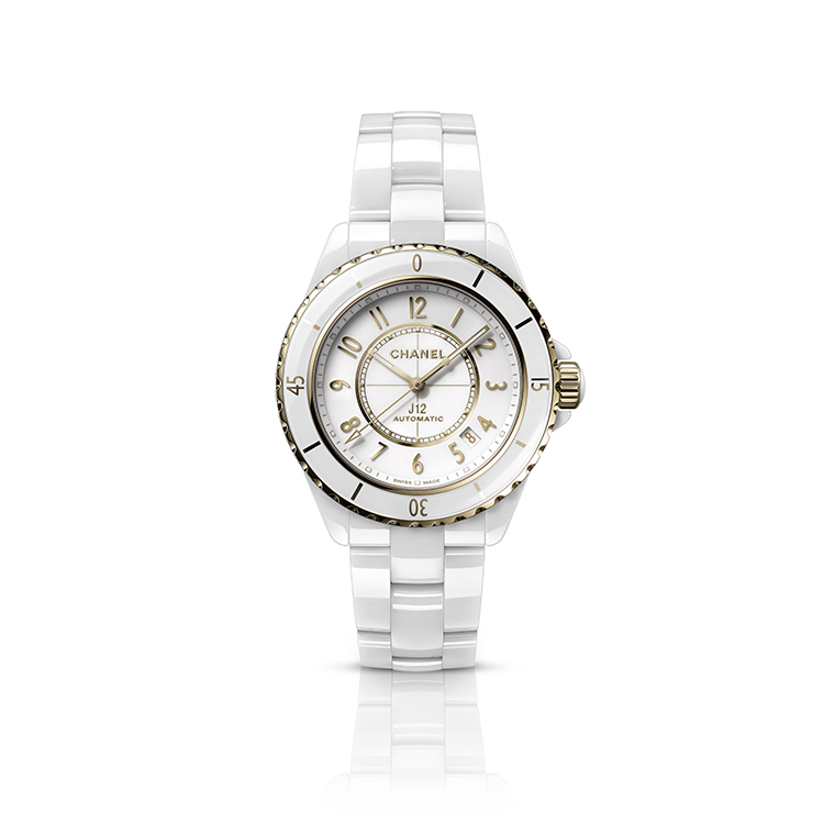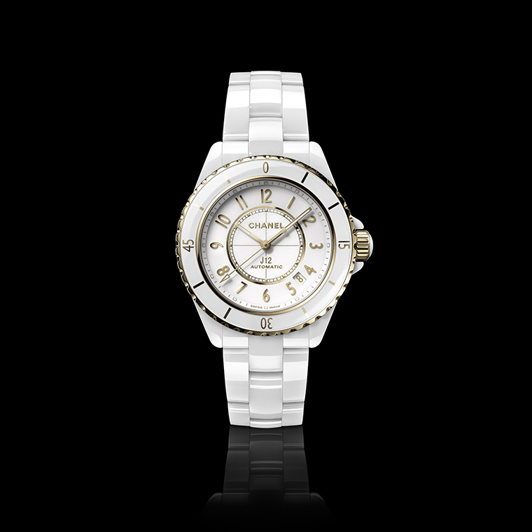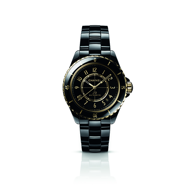 ในปี 2023 สตูดิโอสร้างสรรค์นาฬิกาของ Chanel นำเสนอนาฬิกา J12 คาลิเบอร์ 12.1 ที่ประดับด้วยเยลโลว์โกลด์ 18K เป็นครั้งแรกเพื่อยกระดับความมีสไตล์ให้กับนาฬิกาอันเป็นเอกลักษณ์ ซึ่งมีทั้งความเป็นผู้ชายและผู้หญิงอยู่ในเรือนเดียวกัน รุ่นนี้มีให้เลือกทั้งแบบเซรามิกสีดำหรือสีขาว ขอบตัวเรือนและเม็ดมะยมทำจากเยลโลว์โกลด์ 18K และหน้าปัดตกแต่งด้วยเยลโลว์โกลด์อย่างประณีต พร้อมด้วยเข็มนาฬิกา ตำแหน่งแสดงชั่วโมง และรอยบากที่เคลือบด้วยเยลโลว์โกลด์