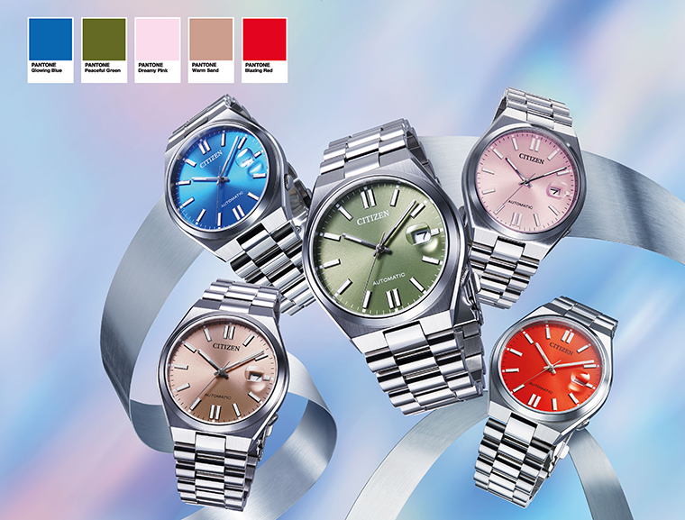 นาฬิกา CITIZEN x PANTONE Color Palette Nowstalgia “A New Spirit” แต่ละรุ่นมีจำนวนจำกัดทั่วโลกเพียงเรือนละ 1999 เรือน ซึ่งถือเป็นการยกย่องปีที่สร้างแรงบันดาลใจให้กับคอลเลกชั่นนี้อย่างชัดเจน นาฬิกาทำจากสแตนเลสสตีล มีเส้นผ่านศูนย์กลาง 40 มม. และกันน้ำได้ 5 บาร์ เครื่อง Caliber 8210 เต้นภายในนาฬิกาเพื่อให้พลังงานสำรองได้ประมาณ 40 ชั่วโมง นาฬิการุ่นพิเศษจำนวนจำกัดยังมาในบรรจุภัณฑ์ที่สวยงามใหม่ของ CITIZEN ซึ่งมาพร้อมกับการเน้นสี PANTONE ที่สอดคล้องกันบนกล่อง กล่องที่เป็นมิตรต่อสิ่งแวดล้อมใช้กระดาษที่ผ่านการรับรอง FSC และสนับสนุนการปกป้องป่าไม้ในโลกของเรา ซึ่งเป็นภารกิจที่ CITIZEN สนับสนุนอย่างสุดใจ