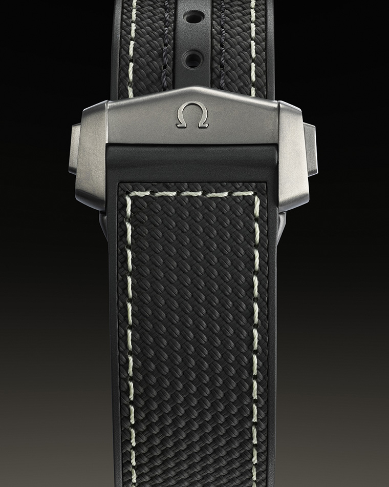 โดยในส่วนอื่น ทาง OMEGA เลือกตัดด้วยวัสดุไทเทเนียมเกรด 5 ทั้งขอบตัวเรือนและหัวสายนาฬิกาแบบบานพับ เช่นเดียวกับหน้าปัดยิงทรายและชุดเข็มกับหลักชั่วโมงสีแอนทราไซต์ การใช้ไทเทเนียมนับว่าได้เป็นมาตรฐานพิเศษซึ่งรับความนิยมในอุตสาหกรรมการบินอวกาศ ในขณะที่โดดเด่นด้านความทนทาน นาฬิกาก็ไม่ได้มีน้ำหนักที่สูงขึ้นมากนัก