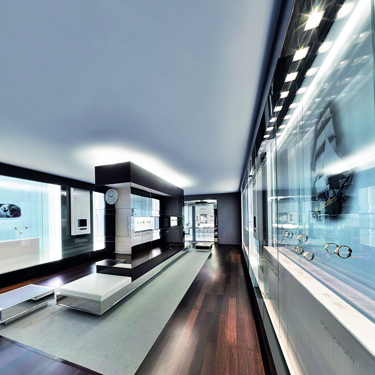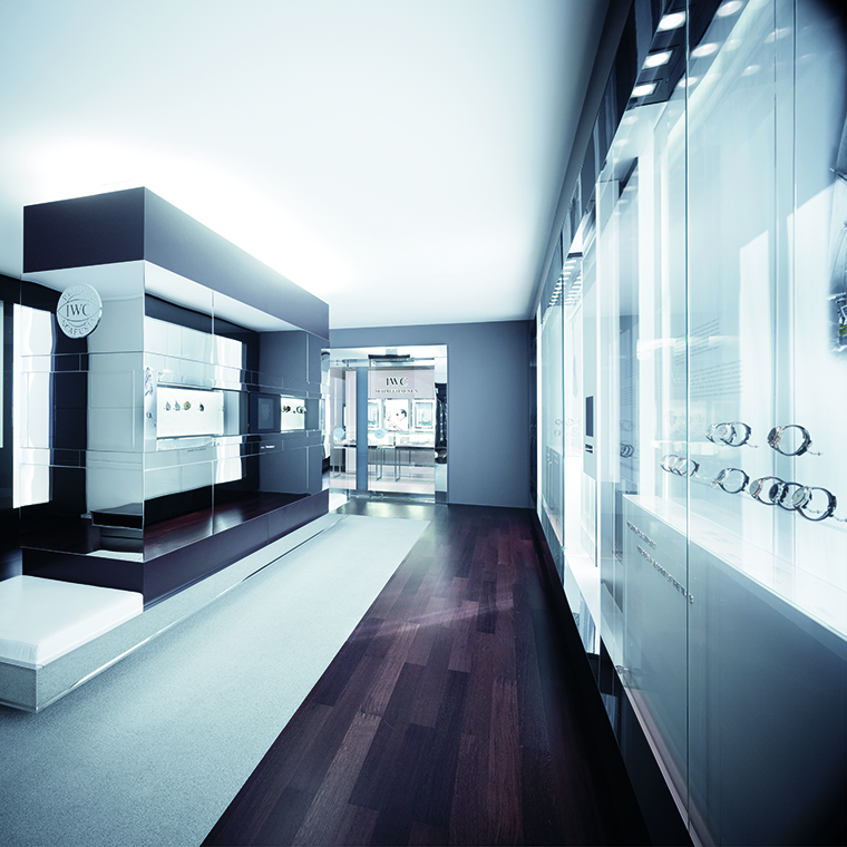 อีกพื้นที่สำคัญของแบรนด์ก็คือ IWC Manufakturzentrum หรือศูนย์กลางแห่งการผลิตนาฬิกาของแบรนด์ภายในอาคารทันสมัย เมื่อเดินเข้าไปภายในโถงห้องรับรอง สิ่งแรกที่สะดุดตาก็คือรางวัลอันทรงเกียรติจาก GEO Award ที่ตั้งเด่นเป็นสง่า และผนังอีกด้านของห้องรับรองที่มีความสูงถึง 9 เมตร โปร่งสบายและงดงามนี้ยังประดับภาพบุคคลสำคัญของแบรนด์ไว้ด้วย