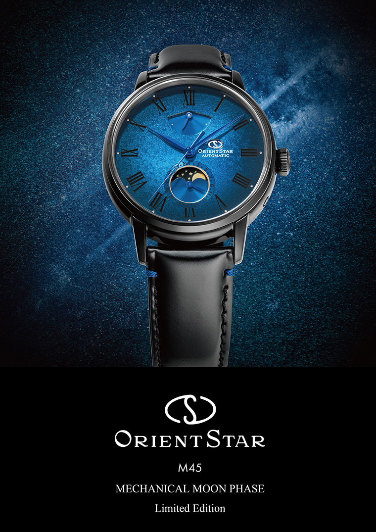 ในส่วนของการแสดงเวลา ยังคงนำเสนอในแบบ 3 เข็ม มาพร้อมจุดสีทองที่วางไว้ด้านนอกของหลักบอกเวลาเลขโรมันแบบ 3 มิติ ซึ่งสร้างเอฟเฟกต์และเงาสามมิติ เพื่อแสดงถึงดาวฤกษ์ที่ส่องแสงมากที่สุดดวงหนึ่งของกลุ่มดาวลูกไก่ และการแสดงข้างขึ้น-ข้างแรมที่ตกแต่งด้วยดวงจันทร์และดวงดาวสีทอง โดยที่ในส่วนของการทำงาน ขยับขึ้นมาใช้กลไก ‘In-house’ (อินเฮาส์) ออโตเมติกชุดใหม่ที่มีความเที่ยงตรงสูง และยังคงความสามารถในการสะสมพลังงานสำรองที่ 50 ชั่วโมงไว้เช่นเดิม ตัวเรือนมีความกว้าง 41.0มิลลิเมตร และมีความหนา 13.8 มิลลิเมตร ผลิตจากสเตนเลสคุณภาพสูง (SUS316L) ชุบสีดำเข้ม เพื่อสื่อถึงท้องฟ้ายามค่ำคืน กระจกคริสตัลแซฟไฟร์ทรงโค้งเคลือบสารกันสะท้อน SAR และมอบคุณสมบัติการกันน้ำที่ 50 เมตร โดยนาฬิกา Orient Star Mechanical Moon Phase M45 Limited Edition นั้นจะมีการผลิตจำนวนจำกัด เพียงแค่ 80 เรือนทั่วโลกเท่านั้น จัดจำหน่ายในราคา 120,000 บาท