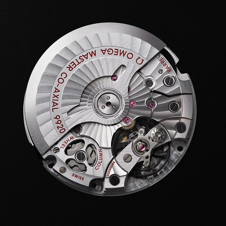 ที่มาของขุมพลังคือกลไกอันนำสมัยอย่าง OMEGA Co-Axial Master Chronometer 9920 กลไกที่มีการผสานรวมหมุดหมายสำคัญหลายชิ้นก่อนจะได้มาซึ่งระบบ Spirate™ รวมถึงได้รับการรับรองในระดับมาตรฐานสูงสุดของอุตสาหกรรมจากสถาบันมาตรวิทยาแห่งสหพันธ์สวิส (METAS) และเช่นเคย หลักฐานของการรับรองดังกล่าวมาในรูปแบบบัตร METAS สีแดงโดดเด่น ซึ่งในกรณีนี้ยังมีการยืนยันถึงความเที่ยงตรงที่สูงถึง 0/+2 วินาทีต่อวันที่สามารถผลิตได้ระดับอุตสาหกรรมด้วยระบบ Spirate™
