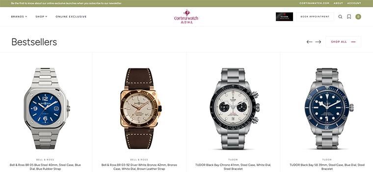 โดยความพิเศษของ Shop.CortinaWatch.com คือการคัดสรรแบรนด์นาฬิกาที่มีชื่อเสียงระดับโลกเพื่อตอบสนองความต้องการของคนรุ่นใหม่ที่ชื่นชอบนาฬิกา โดยจะมีนาฬิกาจากแบรนด์ชั้นนำ อาทิ Bell & Ross (เบลล์ แอนด์ รอสส์) Blancpain (บล็องก์แปง) Chopard (โชพาร์ด) Corum (โครัม) Longines (ลองจินส์) Montblanc (มงต์บลอง) Omega (โอเมก้า) Zenith (เซนิธ) และโดยเฉพาะอย่างยิ่ง แบรนด์นาฬิกาเก่าแก่อย่างเช่น Franck Muller (แฟรงก์ มูลเลอร์) และ Tudor (ทิวดอร์) ผู้ผลิตนาฬิกาที่ทุ่มเทให้กับการพัฒนากลไกที่มีความล้ำสมัย และสร้างสรรค์เรือนเวลาที่หรูหราในมูลค่าที่ผู้ครอบครองทุกคนพึงพอใจ นับเป็นหนึ่งในความพิเศษของนาฬิกาอีกมากมายใน Shop.CortinaWatch.com ที่พร้อมให้ทุกคนจับจองเป็นเจ้าของ”