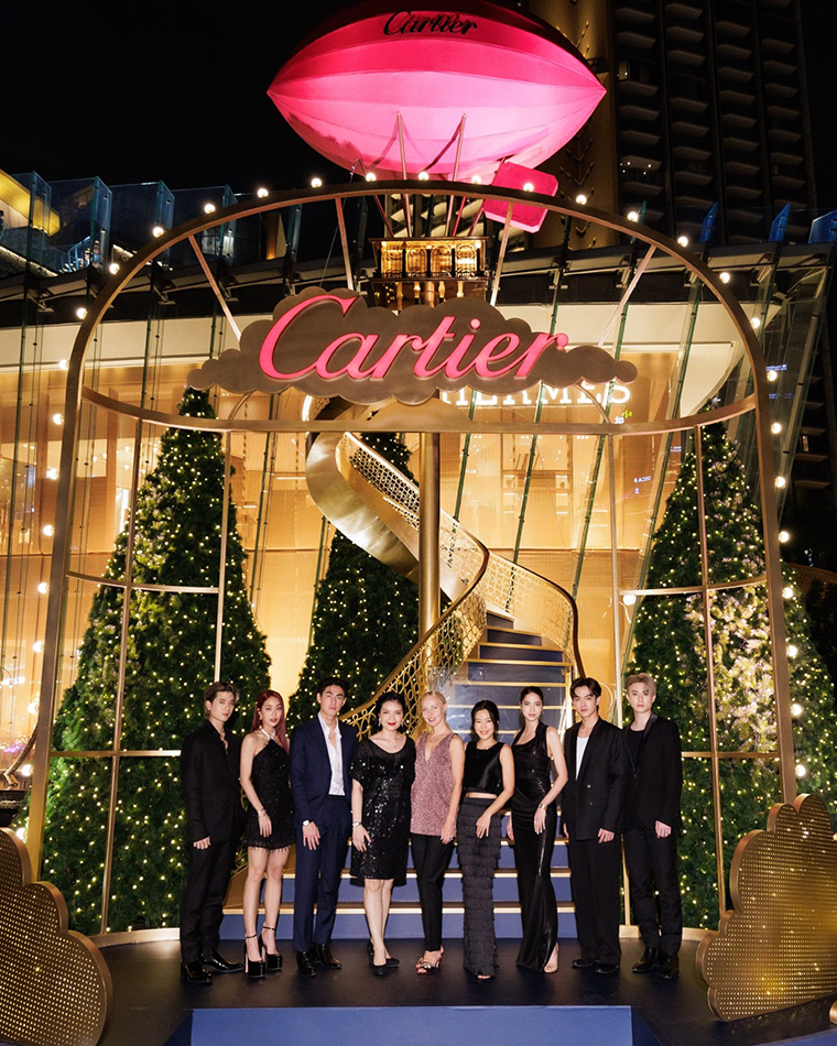 นับเป็นครั้งแรกสำหรับประเทศไทยที่ Cartier ได้รังสรรค์และเนรมิต Installation ต้อนรับช่วงเทศกาลสิ้นปี โดยมีด้วยกัน 2 จุด เริ่มต้นที่ บันไดสู่บ้านมหัศจรรย์ (Cartier Staircase to the Fabulous House) ต้นคริสต์มาสกลางแจ้ง ประดับด้วยเมฆสีทองและไฟระยิบระยับ สร้างบรรยากาศของการเฉลิมฉลอง สูงขึ้นไปคือแอร์ชิปในดีไซน์เอกลักษณ์ของแคมเปญ พร้อมขั้นบันไดที่สามารถขึ้นได้จริง สื่อถึงการพบปะที่เปี่ยมไปด้วยมนต์ขลังในเทศกาลแห่งความสุข จัดแสดง ณ บริเวณลานคนเมือง (River Park) ริมแม่น้ำเจ้าพระยา