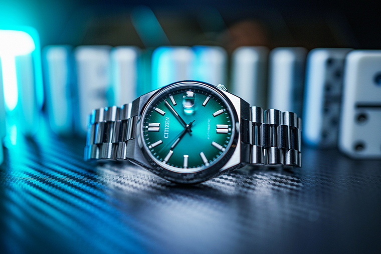 CITIZEN รุ่น NJ015 Automatic “Tsuyosa” นำเสนอสีหน้าปัดหลากสีใหม่มีให้เลือก 4 สีใหม่ 4 สไตล์ ชวนครอบครอง ได้แก่ หน้าปัด สีน้ำเงินเข้ม การ์เดียน, สีเขียว การ์เดียน, สีเทอร์ควอยซ์ หรือ ทิฟฟานี่ บลู และ หน้าปัด สีแดง การ์เดียน สายสีทอง ซึ่งเพิ่มเติมจากปี 2022 ที่มีออกมาแล้ว 4 สี คือ สีดำ, สีน้ำเงิน ซันเบิร์ส, สีเขียว ซันเบิร์ส และ สีเหลือง โดยหน้าปัดสีใหม่นี้มาพร้อมกับดีไซน์เรียบหรูแฝงความแข็งแกร่งดั่งความหมายของคำว่า “Tsuyosa” ในภาษาญี่ปุ่นแปลว่า “ความแข็งแกร่ง” รังสรรค์จาก สแตนเลสสตีล สวยงามด้วยการผสาน ความโค้งของหน้าปัด ขนาด 40 มิลลิเมตร และขอบตัวเรือนทรงกลมเพิ่มความหรูหราด้วยสายสเตนเลสสตีลดีไซน์สปอร์ตหรู อินทิเกรเตด