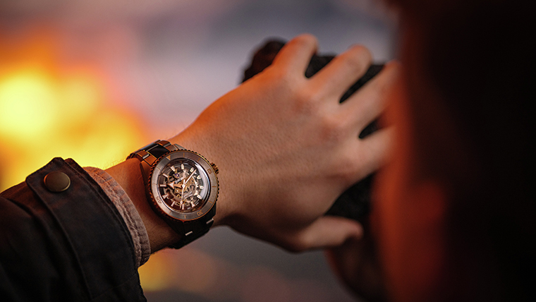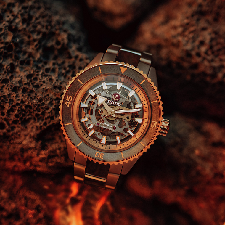 ไม่เพียง Centrix เท่านั้นที่เป็นนาฬิกาเรือนเด่นสำหรับช่วงเวลาอันล้ำค่า แต่ยังมี Captain Cook High-Tech Ceramic Skeleton ดีไซน์ใหม่แห่งปี ที่หล่อตัวเรือนขึ้นจากพลาสม่าไฮเทคเซรามิกซึ่งขึ้นชื่อว่าทนทานที่สุด มาในเฉดสีถ่านหินและควันบุหรี่ดูลึกลับ แถมยังดูน่าค้นหายิ่งขึ้นเมื่อแบรนด์ดีไซน์หน้าปัดให้กว้างขึ้น และเป็นแบบ Skeleton เปิดให้เราเห็นโครงสร้างกลไกคาลิเบอร์ R808 ด้านในที่มาในโทนสีต่างจากเดิม ส่วนการตกแต่งพิเศษมีทั้งแพลตินัมขัดเงา เฟืองครอบตัวบอกนาทีสีโรสโกลด์ และการเลือกใช้เฉดสีต่างๆ ที่ดูตัดกัน กลไกการเดินมาพร้อมแฮร์สปริง NivachronTM เช่นเคย ซึ่งช่วยป้องกันสนามแม่เหล็ก ทำให้บอกเวลาได้เที่ยงตรงและเชื่อถือได้เสมอ