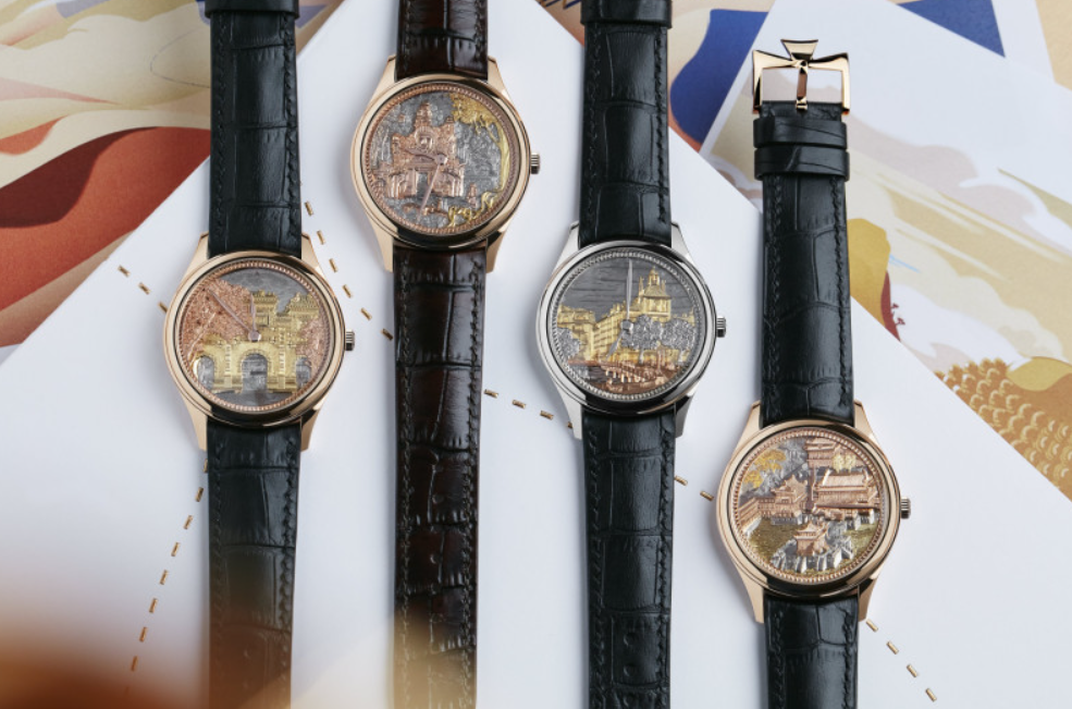 โดยช่างแกะสลักระดับมาสเตอร์ของโรงงานการผลิตได้ดึงแรงบันดาลใจมาจากภาพวาดต่าง ๆ นับย้อนกลับไปใน ศตวรรษที่ 19 ณ ช่วงเวลาที่ วาเซอรอง คองสตองแตง ได้ติดต่อทําการค้าเป็นครั้งแรก ๆ กับจีน โดยหน้าปัดเสมือนจริงอันโดดเด่นนี้ได้ถูกสร้างสรรค์ขึ้นโดยการใช้เทคนิคซึ่งยังไม่เคยมีมาก่อนใน Vacheron Constantin ที่ประกอบด้วยการสลักรูปขนาดจิ๋ว และการแกะสลักบนแผ่นบาง ๆ มากของเยลโลว์โกลด์ พิงก์โกลด์ และไวท์โกลด์ จํานวน 6-9 แผ่น ซึ่งวัดความหนาได้น้อยกว่ามิลลิเมตร จากนั้นองค์ประกอบของหน้าปัดเหล่านี้จึงถูกนํามาประกอบและบรรจบกันโดยการเล่นกับเฉดสีต่างๆ ของทองเพื่อสร้างรูปของภาพจําลอง หรือแม้แต่การวางซ้อนกันเพื่อเน้นย้ำถึงความตื้นลึกและมิติของภาพ และสร้างองค์ประกอบที่ดูเหมือนจริงยิ่งขึ้น นอกจากนี้ยังมีการใช้เทคนิคคร่ำทองเพื่อสร้างสรรค์ฉากของต้นไม้ได้อย่างเหมือนจริง นาฬิกาตัวเรือนพิงก์โกลด์ขนาดเส้นผ่านศูนย์กลาง 40 มม. เหล่านี้ขับเคลื่อนโดยกลไกจักรกลไขลานอัตโนมัติ คาลิเบอร์ 1120 ที่ เป็นกลไกระดับตำนานของ Vacheron Constantin และถูกเลือกใช้ด้วยเพราะมีความเป็นกลไกบางพิเศษ ด้วยความหนาเพียง 2.45 มม. แต่ยังคงไว้ด้วยโครงสร้างอันเป็นประโยชน์และทรงประสิทธิภาพ