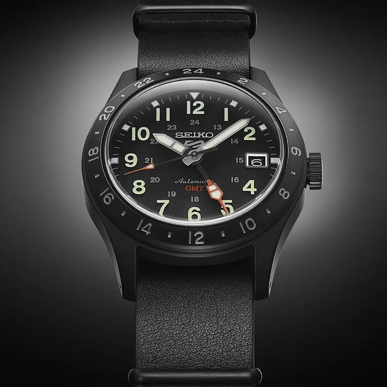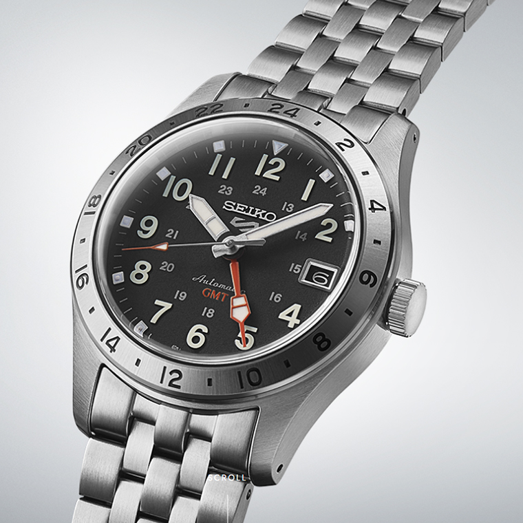 ความโดดเด่นที่ถือเป็นไฮไลต์ของนาฬิการะบบอัตโนมัติ Seiko 5 Sports Field GMT คือเข็ม GMT ดีไซน์ใหม่ ออกแบบให้ปลายเข็มเป็นรูปทรง 5 เหลี่ยมสีแดง เพื่อการมองเห็นที่ชัดเจนยิ่งขึ้นในการอ่านค่าเวลา และโดดเด่นยิ่งกว่าเมื่ออยู่คู่กับหน้าปัดสีดำด้าน และเพิ่มความสมบูรณ์แบบของเรื่องราวในครั้งนี้ ด้วยกระจกหน้าปัดทรงโค้ง