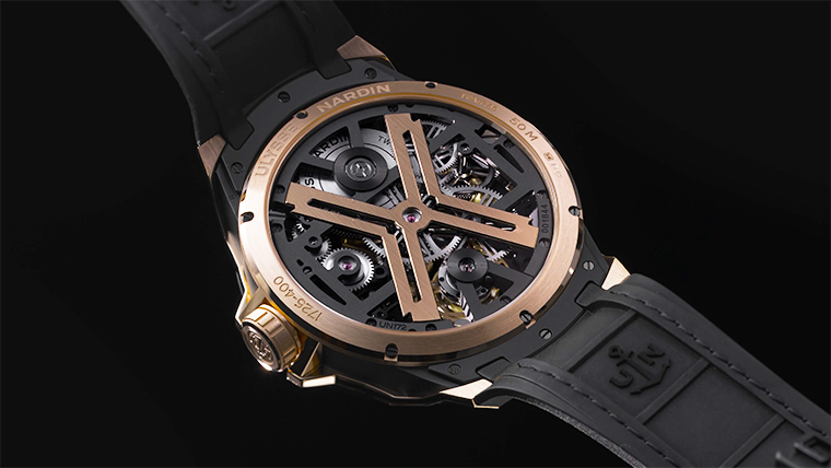 สิ่งมีชีวิตมหัศจรรย์ได้ถูกนำเสนอผ่านผลงานชิ้นเอกของเครื่องบอกเวลาสุดไฮเทคและล้ำสมัย: Ulysse Nardin Blast Tourbillon โครงสร้างที่กล้าหาญเสริมจุดเด่นด้วยมังกรและหน้าปัดสเกเลตัน ผลงานนี้บรรจุกลไก Calibre UN-172 ที่ผ่านการพัฒนา กรงทูร์บิญองแบบสเกเลตันรุ่นแรกของ Ulysse Nardin พร้อมระบบขึ้นลานอัตโนมัติที่เปิดตัวในปี 2020 โดดเด่นด้วยไมโครโรเตอร์แพลตตินัมที่มองเห็นได้ ณ ตำแหน่ง 12 นาฬิกา ซึ่งเป็นส่วนประกอบขนาดเล็กแต่มหัศจรรย์ที่สามารถสำรองพลังงานได้นานถึง 3 วัน นาฬิกาอันล้ำสมัยที่สุดของ Ulysse Nardin มาพร้อมฟลายอิ้งทูร์บิญองในตำแหน่ง 6 นาฬิกา พัฒนาจากความเชี่ยวชาญของ Maison ในการผลิตชิ้นส่วนซิลิคอน เปิดตัวครั้งแรกในปี 2001 ด้วย Freak ที่มาปฏิวัติวงการนาฬิกา วัสดุนี้ใช้สำหรับทำเอสเปทเมนท์วีล พาเลทฟอร์คและบาลานซ์สปริง เพิ่มประสิทธิภาพและแรงต้านของกลไก