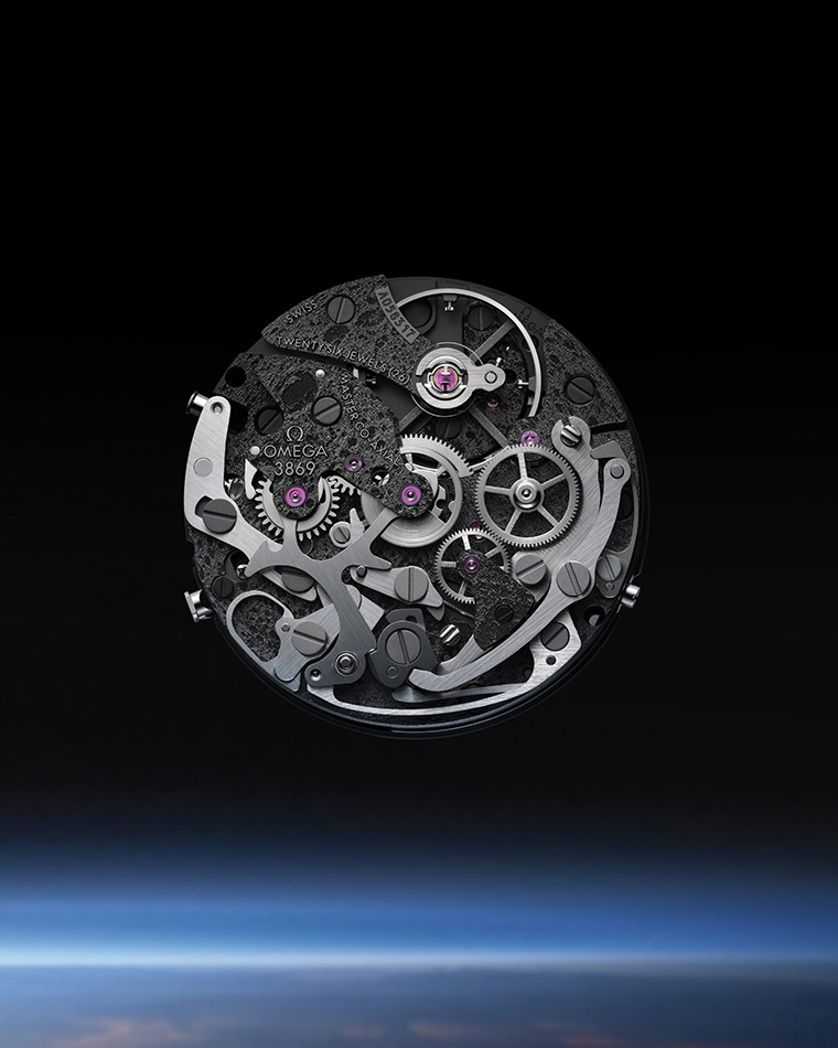 สำหรับการรังสรรค์สัมผัสที่เป็นเอกลักษณ์ทั่วทั้งการออกแบบ ลวดลายพื้นผิวดวงจันทร์บนกลไกนาฬิกา Calibre 3869 จึงถูกตกแต่งด้วยกรรมวิธีการระเหยด้วยเลเซอร์บนชิ้นส่วนเมนเพลทกับสะพานเครื่องรมดำ เฉกเช่นเดียวกับดวงจันทร์ กลไกรุ่นนี้จะอวดโฉมให้ได้เห็นทั้งสองด้านที่แตกต่างกัน บนฝั่งหน้าปัดจะแสดงด้านของดวงจันทร์ที่เรามองเห็นจากโลก ในขณะที่ด้านหลังของเรือนเวลาจะเผยด้านมืดของดวงจันทร์ที่มีเพียงนักบินอวกาศเท่านั้นที่เคยสัมผัส กรรมวิธีการสลักด้วยเลเซอร์และการใช้พื้นผิวที่ตัดกันจึงทำให้การปรับโฉมครั้งนี้เป็นการตีความดวงจันทร์ใหม่ รายละเอียดต่างๆ ได้ถูกจัดวางอย่างวิจิตรและผสมผสานไปกับชิ้นส่วนจักรที่เคลือบด้วยสีเทาอ่อนกับบาลานซ์วีลเคลือบสีทองและเทาเข้มอย่างลงตัว