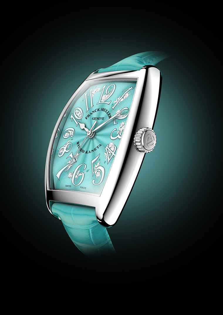 สำหรับความร่วมมือกับ Franck Muller ในครั้งนี้ คาเนตะได้ดึงความเชื่อโบราณของเอเชียตะวันออกที่ให้ความเคารพว่ามังกรนั้นเป็นสัตว์แห่งเทพเจ้า และมอบพรให้กับโลกด้วยฝนสำหรับการเก็บเกี่ยวผลิตผลอันอุดมสมบูรณ์ และในครั้งนี้ เธอยังได้เลือกใช้การตีความอันเรียบง่ายยิ่งขึ้นและสง่างามมากขึ้นที่นับเป็นความหลากหลายของสไตล์ของเธอ โดยตัวละครเหล่านี้บนหน้าปัดเรือนเวลาส่วนใหญ่อยู่ในเฉดสีดำและขาว ตกแต่งด้วยเฉดสีฟ้าทะเลบนหนวดมังกร เพื่อมอบภาพที่เชื่อมโยงถึงบทบาทของมังกรในฐานะผู้นำพามาซึ่งสายฝน การเปรียบเปรยเหล่านี้ยังขยายไปสู่เครื่องหมายอินเด็กซ์ด้วยสีสันที่คล้ายกัน ซึ่งนับเป็นอีกหนึ่งจุดเชื่อมโยงความสัมพันธ์ของมังกรที่มีต่อธาตุน้ำ ภาพสัญลักษณ์เหล่านี้ได้ขยายสู่หน้าปัดสีเทอร์ควอยซ์ซึ่งนำเสนอเฉดสีที่เข้ากันโดยการตกแต่งแล็กเกอร์ ขณะเดียวกันก็เล่นกับแสงผ่านลวดลายพื้นผิวแบบกิโยเช่ (guilloché) พร้อมทั้งสายนาฬิกาสีเทอร์ควอยซ์ที่โอบรับกับทุกองค์ประกอบเหล่านี้ได้อย่างงดงามสมบูรณ์แบบ