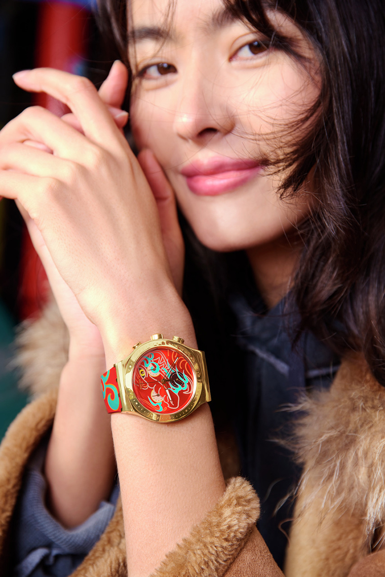 นาฬิกา SKIN IRONY ดีไซน์บางเฉียบสีทองเจิดจรัสอันเป็นสัญลักษณ์แห่งความเจริญรุ่งเรือง สติปัญญา และการเริ่มต้นใหม่ ประกอบกับลวดลายมังกรอ่อนช้อยที่โลดแล่นไปทั่วทั้งเรือนด้วยสีที่เป็นสัญลักษณ์ของความโชคดี ดีไซน์สุดมินิมอลตัดกับโทนสีที่สดใสอย่างลงตัว ปิดท้ายด้วยเข็มนาฬิกาเรืองแสงในความมืด นาฬิกาเรือนนี้จะช่วยมอบพลังแห่งความอิสระให้คุณ ปลุกจิตวิญญาณมังกรในตัวตนตลอดทั้งปี มาในราคา 7,100 บาท พร้อมหน้าปัดขนาด 38 มิลลิเมตร