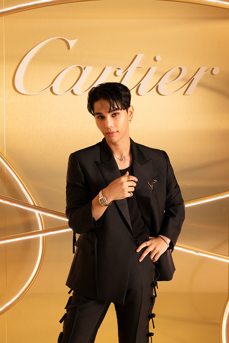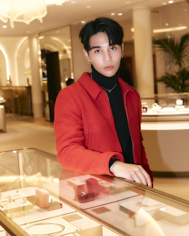 สำหรับเจฟ ซาเตอร์, Friend of the Maison จากประเทศไทย ได้เข้าเยี่ยมเยือน Cartier Temple ที่ 13 Rue de la paix หนึ่งในบูติกประวัติศาตร์ของคาร์เทียร์ โดยมาในลุคแจ็คเก็ตสีแดงโดดเด่น เสริมความหรูหราด้วยเครื่องประดับไอคอนิคจากคาร์เทียร์หลากหลายคอลเลคชั่น ไม่ว่าจะเป็นต่างหูไวท์โกลด์ จากคอลเลคชั่น จุสต์ เอิง คลู (Juste un Clou), สร้อยคอไวท์โกลด์ ประดับเพชรจากคอลเลคชั่น เลิฟ (Love), แหวนจากคอลเลคชั่น ทรินิตี้ (Trinity), แหวนไวท์โกลด์ และกำไลข้อมือไวท์โกลด์ จากคอลเลคชั่น แคลช เดอ คาร์เทียร์ (Clash de Cartier)