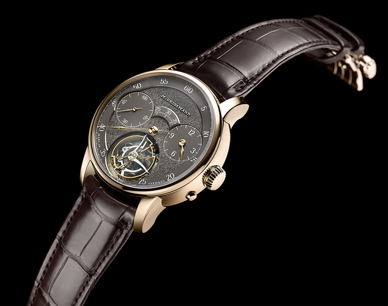 พร้อมด้วยตัวเลขอารบิกสีขาวและชุดเข็มที่มีรูปทรงเรียวงามซึ่งถูกผลิตขึ้นโรงงานของบริษัทเอง นาฬิกา TOURBILLON Tremblage จึงเป็นการนำเสนอความงดงามอันโดดเด่นของเครื่องบอกเวลาที่มีความแม่นยำสูงแห่งศตวรรษที่ 19 จากเมือง Glashütte