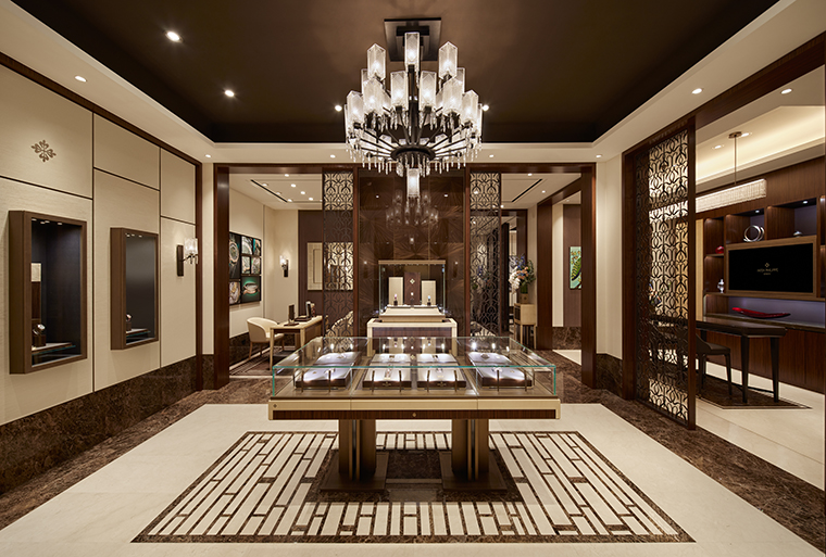 แขกผู้มาเยือนสามารถชมนาฬิกา Patek Philippe รุ่นต่าง ๆ ที่แสดงอยู่ภายใต้ตู้จัดแสดงของบูติก หรือสามารถผ่อนคลายไปกับหลากหลายพื้นที่ซึ่งรังสรรค์ขึ้นผ่านการออกแบบเพื่อให้บรรจบกับความต้องการอันแตกต่าง นับตั้งแต่พื้นที่ส่วนตัวตลอดจนถึงบรรยากาศสไตล์แคชวลอันแสนอบอุ่น ขณะที่ฉากกั้นต่าง ๆ ผ่านการตกแต่งด้วยเลเซอร์คัต ถ่ายทอดลวดลายสัญลักษณ์ Calatrava Cross ของแบรนด์พร้อมสำหรับมอบความเป็นส่วนตัวสำหรับการพูดคุยของลูกค้า และท้ายสุด ห้องวีไอพีที่ตั้งอยู่ ณ ด้านหลังของบูติก เพื่อนำเสนอความเป็นส่วนตัวอย่างแท้จริง สำหรับแขกผู้มาเยือนผู้ซึ่งปรารถนาจะได้ค้นพบและสัมผัสกับผลงานการสร้างสรรค์ของ Patek Philippe ด้วยความเป็นส่วนตัวและไร้การรบกวนใด ๆ มุมห้องสมุดเล็ก ๆ ที่รายล้อมไปด้วยหนังสือซึ่งอุทิศให้กับเรื่องราวของการประดิษฐ์นาฬิกา และรวมไปถึงหนังสือแห่งเรื่องราวประวัติศาสตร์และเส้นทางการสร้างสรรค์ของ Patek Philippe ที่ได้รับการคัดสรรมาอย่างพิถีพิถันสำหรับการชมและเพลิดเพลินไปกับหลากหลายเรื่องราวของเรือนเวลา