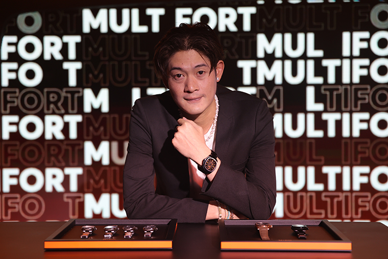 ด้านนักแสดงหนุ่ม มีน-พีรวิชญ์ อรรถชิตสถาพร เล่าว่า “ถ้าเลือกนาฬิกาดีๆ สักเรือนสำหรับใส่ในชีวิตประจำวัน นอกจากเลือกจากแบรนด์ที่ชอบแล้ว แนะนำให้เลือกจากดีไซน์ที่สามารถสวมใส่ได้ในทุกโอกาส อย่างเรือนที่ใส่วันนี้เป็นรุ่น มัลติฟอร์ต ทีวี บิ๊ก เดท โรส โกลด์ พีวีดี (Multifort TV Big Date - Rose Gold PVD) กรอบตัวเรือนเป็นสแตนเลสสตีลสีโรสโกลด์ หน้าปัดไล่เฉดสีน้ำตาลไปจนเป็นสีดำเข้มเป็นเรือนที่เรียบหรูแต่ดูคล่องแคล่วด้วยการใช้สายนาฬิกาแบบยางสีน้ำตาลเข้ม ซึ่งเป็นเรือนที่เราชอบมาก เพราะค่อนข้างเป็นตัวเองเลย เป็นดีไซน์ที่เรียบหรูแต่ไม่มากเกินไปเพราะสายนาฬิกาที่มาช่วยเพิ่มความสนุกให้กับลุคดูทะมัดทะแมงขึ้น”