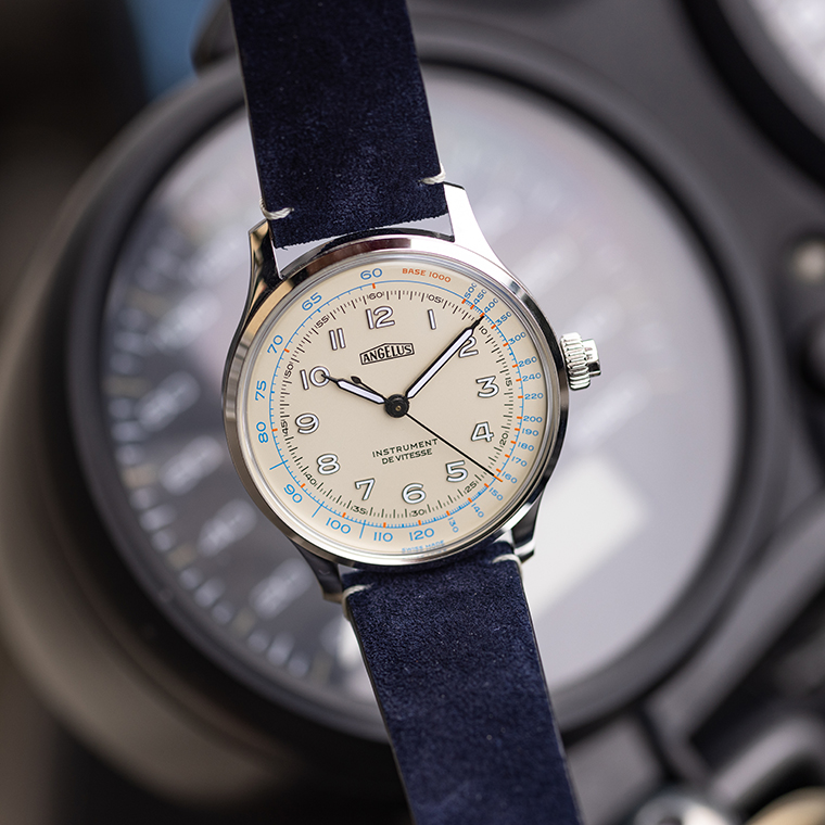 Angelus พาคุณย้อนกลับไปสู่ยุคทองแห่งความรุ่งเรืองของการแข่งรถ ด้วยความคลาสสิคครั้งใหม่ Instrument de Vitesse นาฬิการุ่นใหม่ที่อยู่ในคอลเล็กชั่น La Fabrique โดดเด่นด้วยฟังก์ชั่นจับเวลาแบบโครโนกราฟแบบปุ่มกดเดียว หรือ Mono Pusher พร้อมรูปแบบที่ได้รับแรงบันดาลใจจนเหมือนกับถอดแบบมาจากชุดมาตรวัดบนหน้าปัดของรถวินเทจสไตล์ GT พร้อมการจับเวลาแบบเข็มเดี่ยวด้วยเข็มวินาทีกลาง ซึ่งจะช่วยเพิ่มประสิทธิภาพในการจับเวลาในช่วงของ 1 นาทีได้อย่างยอดเยี่ยม ตัวเรือนมีความเพรียวบาง งามสง่าด้วยรูปทรงสไตล์ย้อนยุค Instrument de Vitesse จึงเป็นนาฬิกาที่สามารถตอบสนองความต้องการของผู้ที่ชื่นชอบนาฬิกาที่มาพี้อมกับเรื่องราวทั้งในเชิงประวัติศาสตร์ และรูปแบบของวัฒนธรรมที่น่าสนใจ โดยสิ่งที่อยู่ในตัวเรือนมีขนาดเส้นผ่านศูนย์กลาง 39 มิลลิเมตรและผลิตจากสแตนเลสสตีลนั้นคือ กลไกไขลานที่ผลิตโดยทาง Angelus ที่มีความบางเพียง 4.20 มิลลิเมตร และสามารถจัดวางอยู่ในตัวเรือนที่มีความหนาเพียง 10 มิลลิเมตรได้อย่างลงตัว โดยรุ่นที่ทำตลาดจะมีทั้งหน้าปัดสีขาวงาช้าง และสีดำสนิทแบบ Ebony-Black โดยทั้ง 2 แบบจะมีการผลิตออกสู่ตลาดเพียงรุ่นละ 25 เรือนเท่านั้น