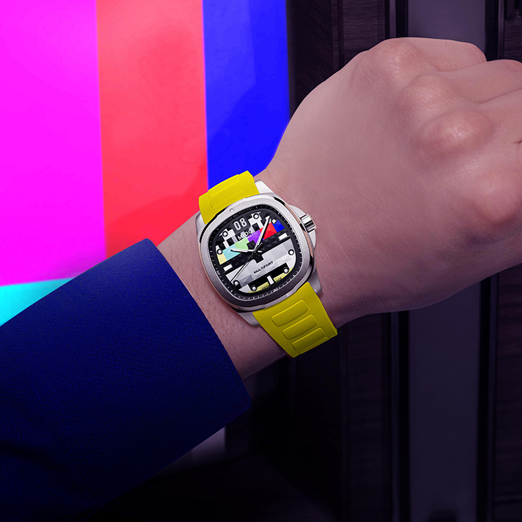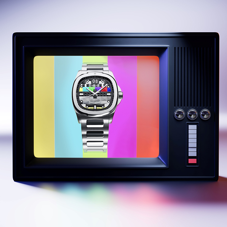 สำหรับคอลเลกชั่น Multifort TV Big Date Limited Edition S01E01 ที่ได้ตอกย้ำความสำเร็จของเรือนเวลารุ่นมัลติฟอร์ต ทีวี ซึ่งเปิดตัวไปในปี 2023 ที่ผ่านมา โดยคอลเลกชั่นลิมิเต็ด อิดิชั่นนี้ ได้นำทุกองค์ประกอบที่สมบูรณ์แบบนี้รวมกัน ทำให้ปฏิเสธไม่ได้เลยว่าโมเดลรุ่นลิมิเต็ด ซีซั่น 01 ตอนที่ 1 ที่เปิดตัวนี้ เปรียบเหมือนซีรีส์ใหม่ ที่จะเริ่มต้นขึ้นอย่างสวยงาม พร้อมความน่าหลงใหล เป็นที่จับตามอง ด้วยหน้าปัดอันน่าทึ่งที่ผสมผสานดีไซน์คลาสสิกเข้ากับความโมเดิร์นได้อย่างลงตัว ถ่ายทอดสู่ตัวเรือนที่มีกรอบหน้าปัดในรูปทรงทีวีสุดคลาสสิกด้วยขนาดหน้าปัดเส้นผ่านศูนย์กลาง 40 มิลลิเมตร ตกแต่งหน้าปัดด้วยดีเทลที่สะท้อนถึงหน้าจอโทรทัศน์ในยุคอนาล็อกด้วยลวดลายภาพทดสอบ (Test Card) บนหน้าจอทีวี ที่ถูกถ่ายทอดในรูปทรงพีระมิดขนาดต่างๆ บนพื้นผิวหน้าปัดช่วยเพิ่มมิติให้เสมือนมีภาพเคลื่อนไหวบนหน้าจอ ประดับหมุดเวลาในรูปทรงสี่เหลี่ยมคางหมูที่ถูกแทนที่ในตำแหน่ง 3, 6 และ 9 นาฬิกา พร้อมจุดบอกเวลาทรงกลมบนหน้าปัดที่แต่งบริเวณขอบสีดำพร้อมการเคลือบสารเรืองแสงซูเปอร์-ลูมิโนวา (Super-LumiNova®) สีขาวลงหมุดบอกเวลา รวมถึงบนเข็มนาฬิกาทั้งเข็มชั่วโมงและเข็มนาที ช่วยให้สามารถอ่านเวลาได้ดีในช่วงค่ำคืนหรือในที่แสงน้อย