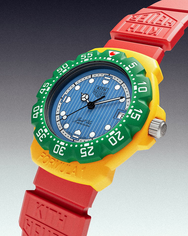 TAG Heuer Formula 1 | Kith รุ่นใหม่ได้จุดชนวนให้หวนคิดถึงยุคสมัยนั้น แต่ปรับแต่งให้เข้ากับยุคปัจจุบันผ่านการใช้สีสัน การร่วมออกแบบและมาในขนาด 35 มม.
