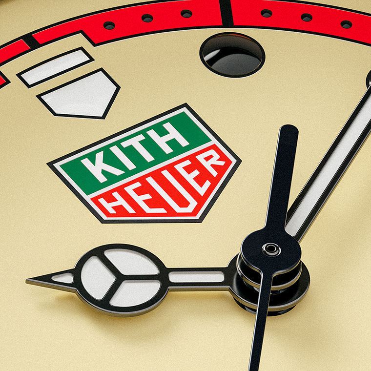 ในก้าวเดินครั้งใหม่นี้ นับเป็นครั้งแรกในหน้าประวัติศาสตร์อันเลื่องลือของ TAG Heuer ผู้ผลิตนาฬิกาลักซ์ชัวรีสัญชาติสวิส ที่ได้หลอมรวมโลโก้ของตนเข้ากับโลโก้ของพันธมิตร TAG Heuer Formula 1 | Kith นำเสนอสัญลักษณ์ในเวอร์ชั่นที่ได้รับการปรับแต่งใหม่ โดยผสมผสานระหว่าง Kith และ Heuer บนหน้าปัด สายนาฬิกายาง และฝาหลัง ซึ่งบนหน้าปัดยังประกอบด้วยคำขวัญของ Kith ว่า “Just Us” เพื่อให้เกียรติต่อมิตรภาพอันแน่นแฟ้นกับ Fieg
