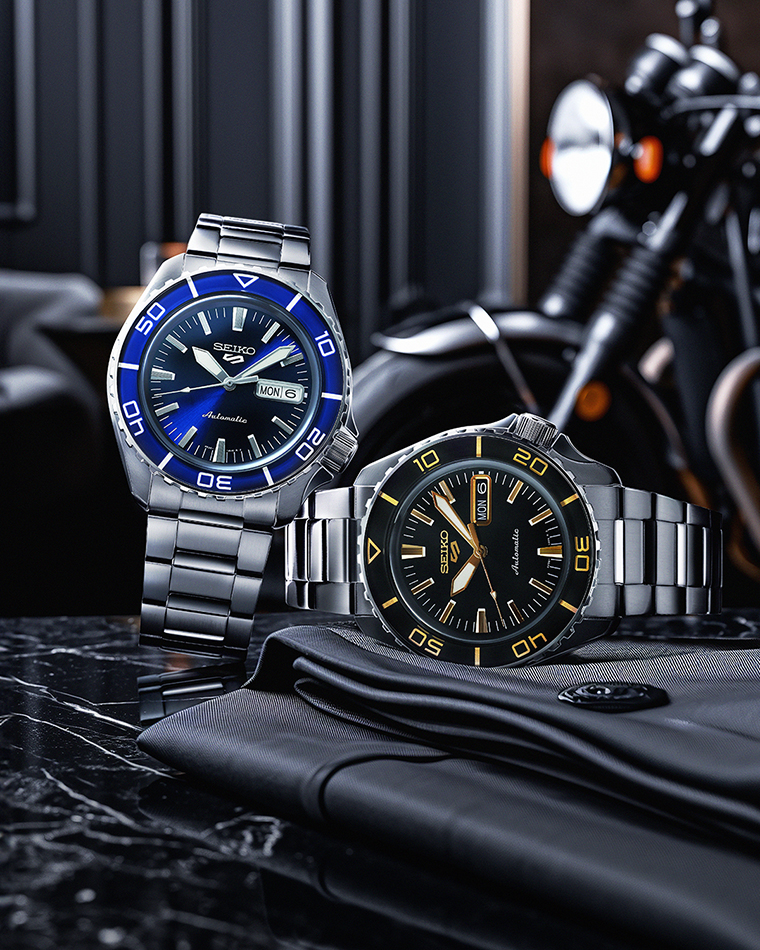 Seiko 5 Sports SKX Series: รหัส SRPK97K และ SRPK99K มาพร้อมระบบกลไลอัตโนมัติคาลิเบอร์ 4R36 ที่สามารถสำรองพลังงานได้นานถึง 41 ชม. ขอบหน้าปัดสามารถหมุนได้ทิศทางเดียว มาพร้อมชุดเข็มและหลักชั่วโมงเคลือบสารเรืองแสงลูมิไบร์ท หน้าต่างแสดงวันประจำสัปดาห์และวันที่ ที่ตำแหน่ง 3 นาฬิกา และตำแหน่งเม็ดมะยมที่ 4 นาฬิกา บนขนาดหน้าปัด 42.5 มม. และประสิทธิภาพการกันน้ำเทียบเท่า 100 เมตร (10 บาร์) สนนราคาเรือนละ 17,000 บาท พร้อมวางจำหน่ายอย่างเป็นทางการ วันที่ 1 มิถุนายน 2024 ช่องทางเว็บไซน์หลัก www.seikoboutiquethailand.com หรือสามารถเลือกชมสินค้าจริงได้ที่ ไซโก บูติก เซ็นทรัลแกรนด์ พระราม9 เคาน์เตอร์ไซโก ณ ห้างสรรพสินค้าชั้นนำ และตัวแทนจำหน่ายอย่างเป็นทางการทั่วประเทศ