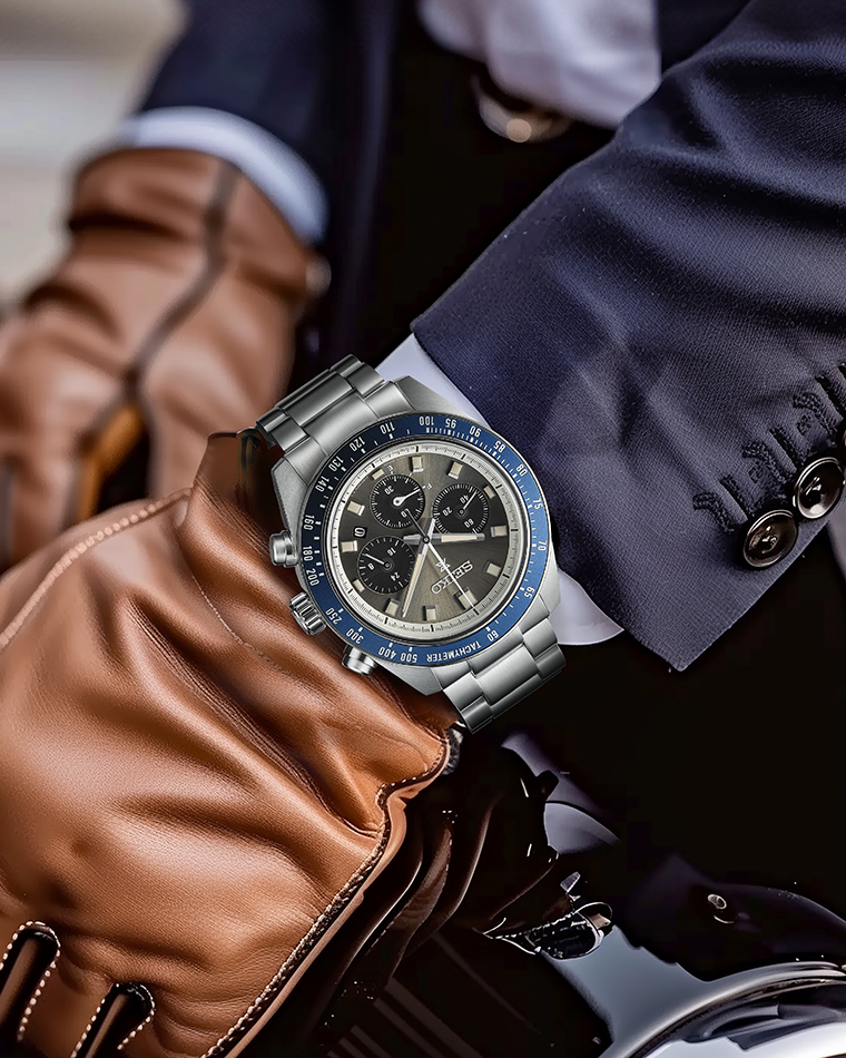 Seiko Prospex Speedtimer Solar Chronograph รหัส SSC939P โดดเด่นด้วยขอบตัวเรือนสีน้ำเงิน ตัดกับพื้นหน้าปัดแบบซันเรย์สีดำ แมตช์เข้ากับสายสเตนเลสสตีลสีซิลเวอร์ มอบลุคที่เรียบง่าย สุภาพ ทรงพลัง และน่าเชื่อถือ ตัวแทนของรถคลาสสิคในการแข่งขัน Grand Tourer หรือ Gran Turismo ในภาษาอิตาลี เป็นการแข่งขันความเร็วของรถยนต์ที่ถูกออกแบบมาเพื่อรองรับการขับขี่ความเร็วสูงในระยะทางไกล ความหรูหราที่ผสมผสานสมรรถนะ ความสะดวกสบาย และการใช้งานจริงเข้าด้วยกัน โดยรูปแบบที่พบมากที่สุดในการแข่งขัน GT นี้คือ รถคูเป้ 2 ประตูวางหน้า ขับเคลื่อนล้อหลัง มีทั้งแบบ 2 ที่นั่งหรือแบบ 2+2