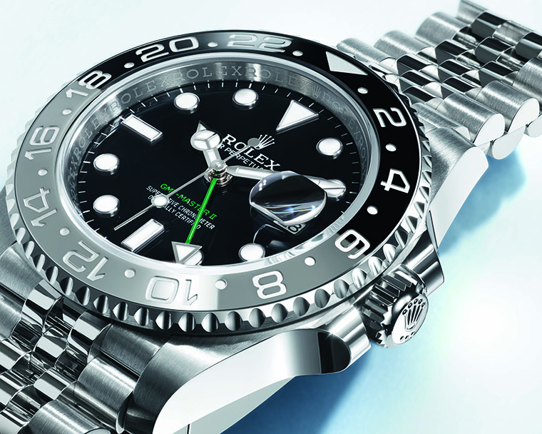 หน้าปัดเคลือบเงาสีดําพร้อมสลักคําว่า “GMT-Master" สีเขียว โดยเข็มแสดงเวลา 24 ชั่วโมงก็ยังเป็นสีเขียวด้วยเช่นกัน ซึ่งดูคล้ายกับเส้นแสงที่เชื่อมสัมพันธ์ระหว่างตัวเรากับโลกใบนี้ นอกจากจะแสดงเขตเวลาอื่นที่เลือกไว้แล้ว เข็มนาฬิกายังชี้ไปยังอีกตําแหน่งที่ตั้งหนึ่งที่สอดคล้องกับผู้สวมใส่ ซึ่งเป็นการแจ้งบอกอารมณ์ความรู้สึกของนักเดินทางแต่ละคนด้วย