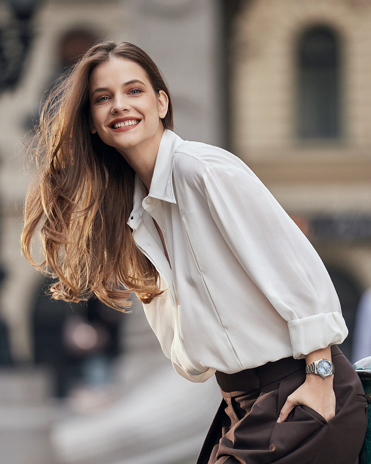 หน้าปัดของนาฬิกาโดดเด่นด้วยดีไซน์เรียบหรู มีการตกแต่งพื้นผิวด้านนอกด้วยลายก้นหอย (snailing) ช่วยขับความสดใสและความเข้มของสีสันให้โดดเด่นยิ่งขึ้น มาพร้อมกับหลักชั่วโมงแบบขีดจำนวน 11 ขีดสีเงินขัดเงา และช่องแสดงวันที่บริเวณตำแหน่ง 6 นาฬิกา หลักชั่วโมงที่ตำแหน่ง 3, 9 และ 12 นาฬิกาเคลือบสารเรืองแสง Super-LumiNova® เช่นเดียวกับเข็มบอกชั่วโมงและนาทีเคลือบโรเดียมขัดเงา ช่วยให้มองเห็นได้ชัดเจนทั้งกลางวันและกลางคืน สำหรับรุ่นขนาด 34 มม. ยังมีตัวเลือกสีสันอื่นๆ อีกมากมาย ส่วนตัวเรือนผลิตจากสแตนเลสสตีล มีทั้งแบบประดับเพชรหรือไม่ประดับเพชร นอกจากนี้ยังมีแบบตัวเรือนผสมผสานวัสดุ (bi-material) ที่มีขอบตัวเรือนเป็นโรสโกลด์ และเม็ดมะยมเคลือบโรสโกลด์ ด้วยดีไซน์ที่ใส่สบายและตอบโจทย์ทุกสไตล์ โดยนาฬิกามาพร้อมสายสแตนเลสสตีลและระบบล็อคแบบพับสามชั้นเพื่อความปลอดภัย หรือสายยางสีสันต่างๆ ที่ตกแต่งด้วยลายนาฬิกาทราย พร้อมระบบล็อคแบบพับสองชั้น ปรับขนาดได้อย่างสะดวก