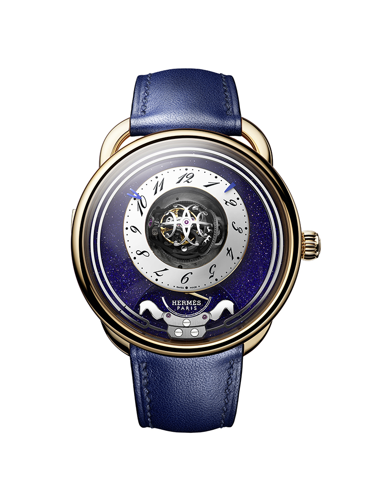 เครื่องบอกเวลาชั้นสูงและสัญลักษณ์แห่งนักขี่ม้าผู้สง่างามได้มาบรรจบและผสมผสานกันภายในเรือนเวลา Arceau (อาร์โซ) สลับซับซ้อนสูงรุ่นนี้ ด้วยองค์ประกอบอันมีเอกลักษณ์เฉพาะหนึ่งเดียวที่ถ่ายทอดผ่าน triple-axis tourbillon หรือทูร์บิญองแบบสามแกน และระบบตีเสียงบอกเวลา minute repeater